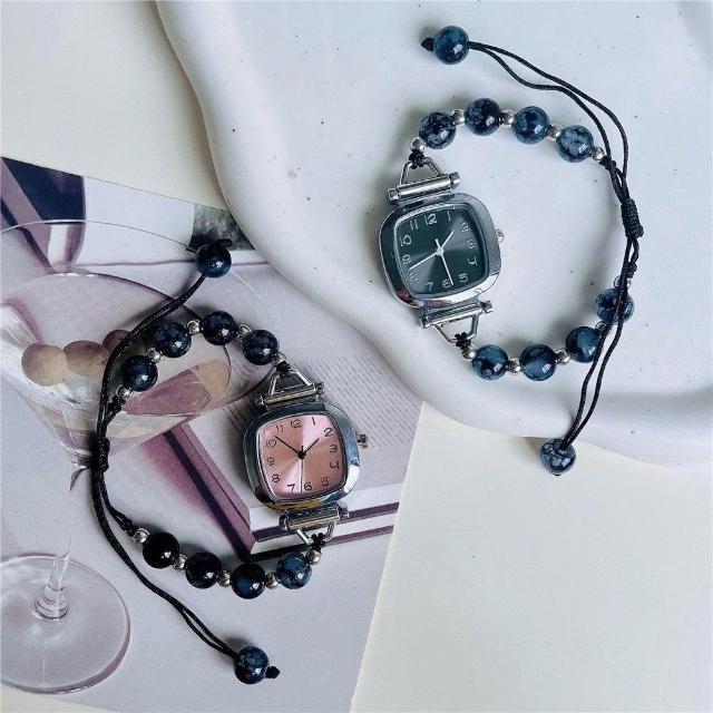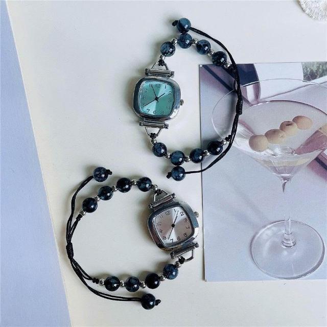 海藍小方糖手鍊手錶女 ins簡約冷淡風高級藝術感手鐲表 精緻小巧方形女款石英錶