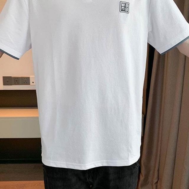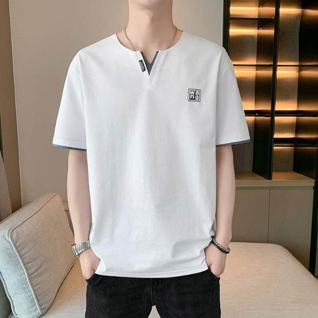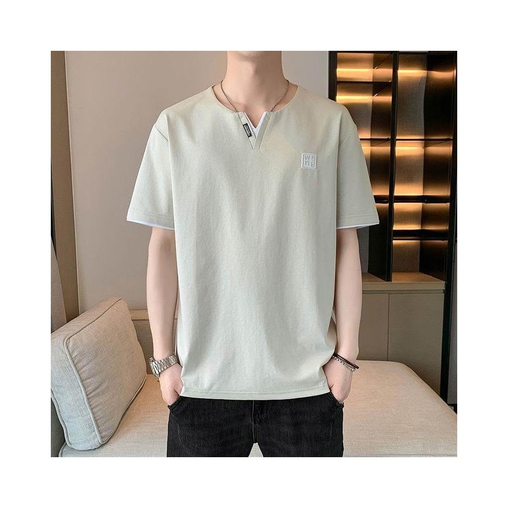 v領短袖t恤男士 夏季潮流薄款 冰絲半袖潮男款 假兩件絲光棉上衣服
