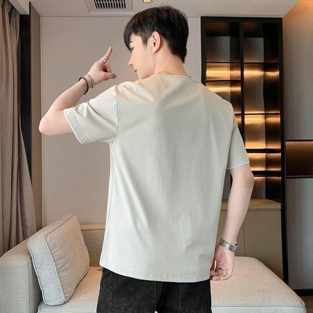 v領短袖t恤男士 夏季潮流薄款 冰絲半袖潮男款 假兩件絲光棉上衣服