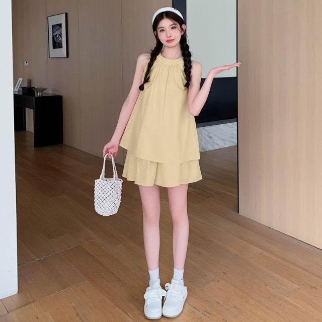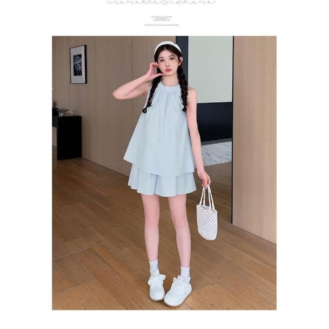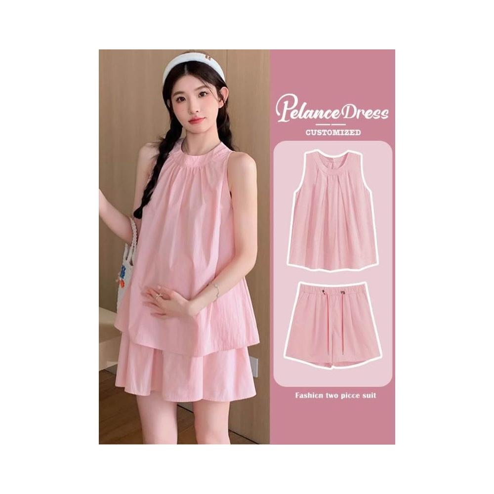 臺潮好運孕婦套裝夏款2026新款 法式可愛小個子無袖背心娃娃衫短褲兩件套薄