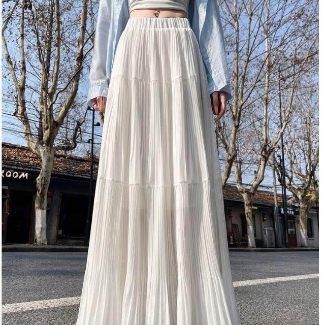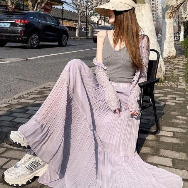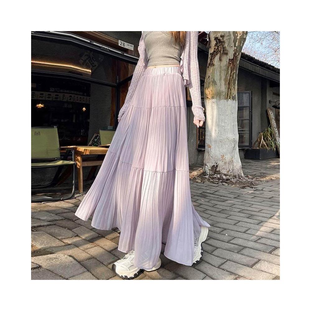 臺潮好運紫色壓褶半身裙女 2026春夏新款高腰顯瘦a字裙子 遮胯大擺百褶長裙