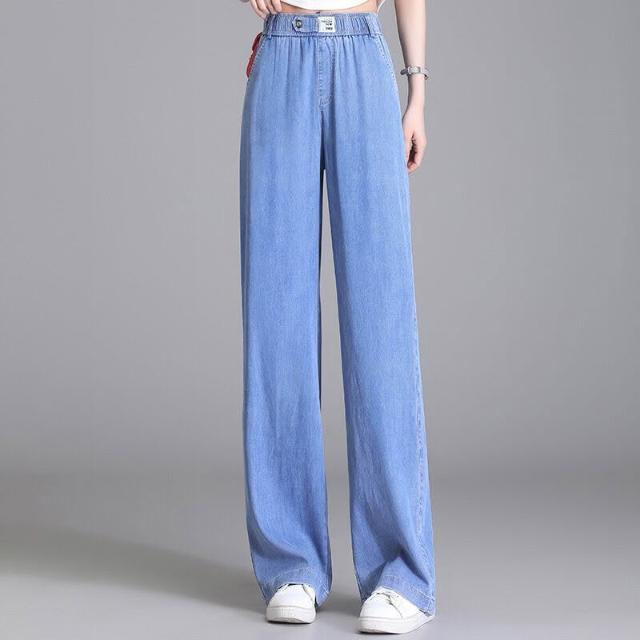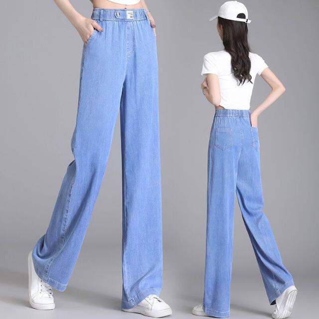 核桃小鋪 天絲牛仔闊腿褲子女夏季超薄高腰冰絲長褲寬松顯瘦九分加長直筒褲 3