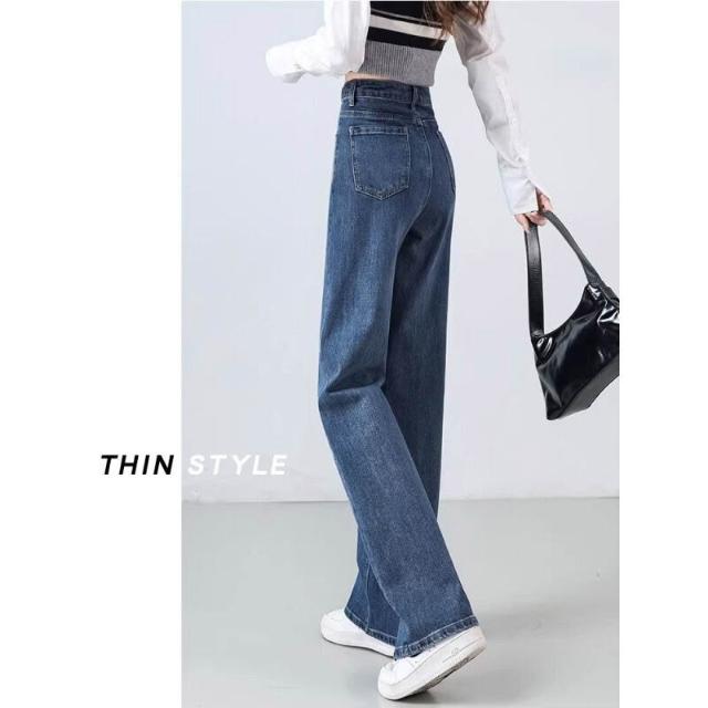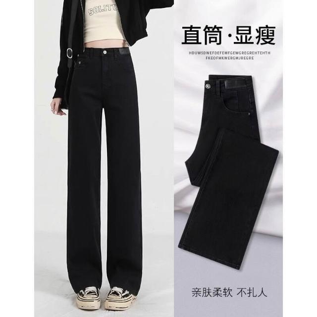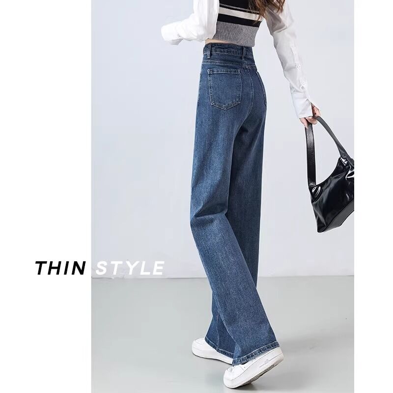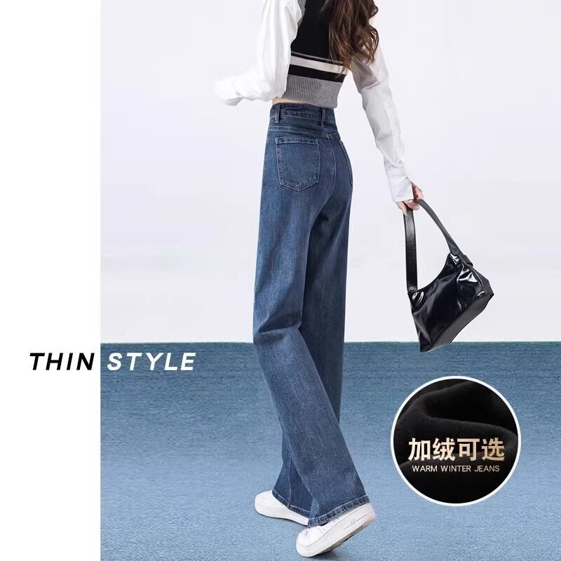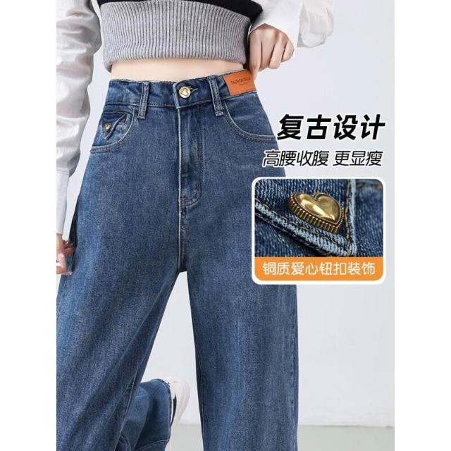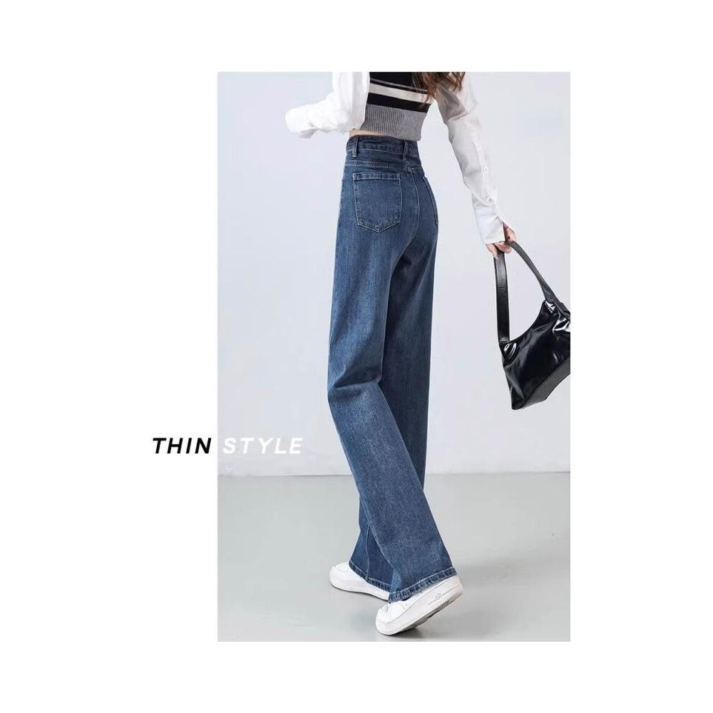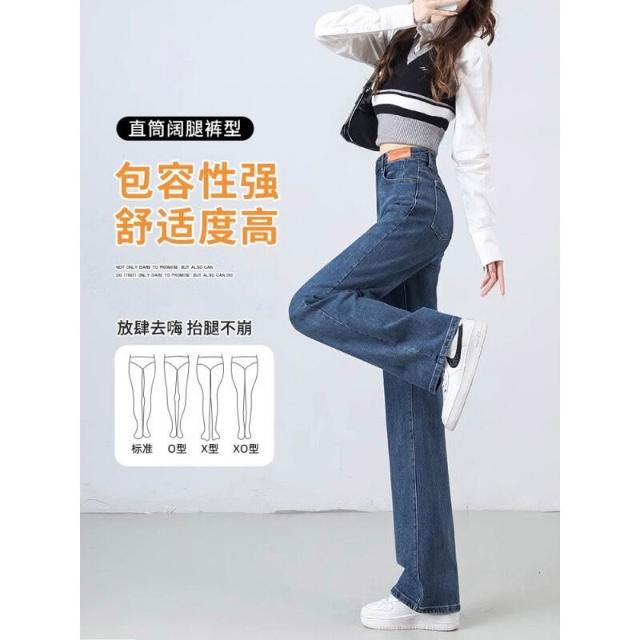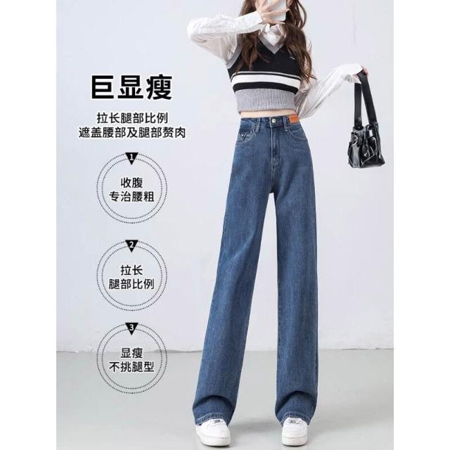 核桃小鋪 窄版直筒褲女春秋新款流行高腰顯瘦小個子寬松藍色闊腿牛仔褲 3