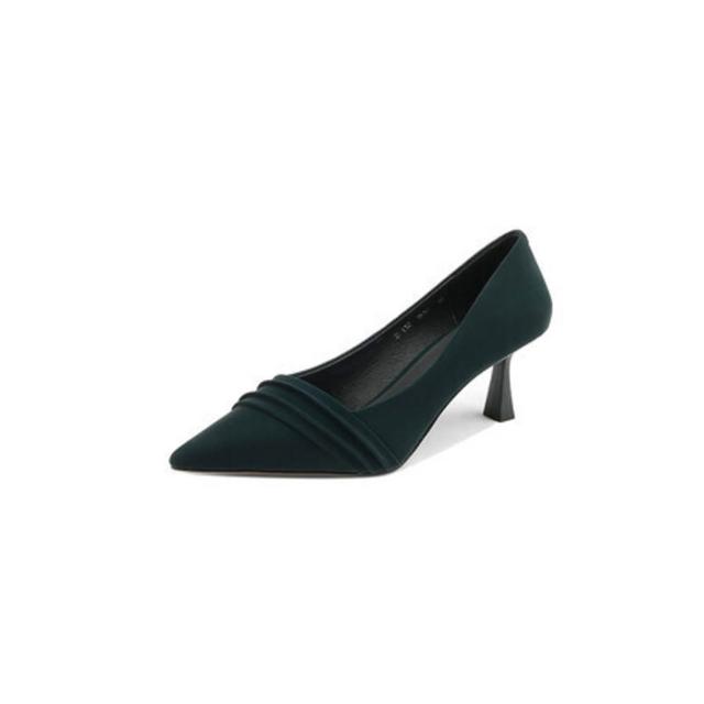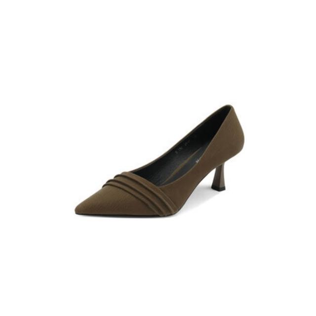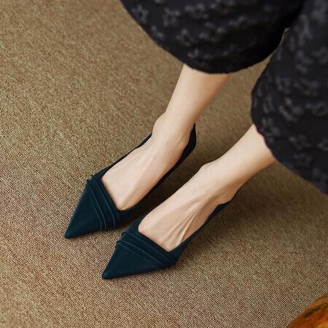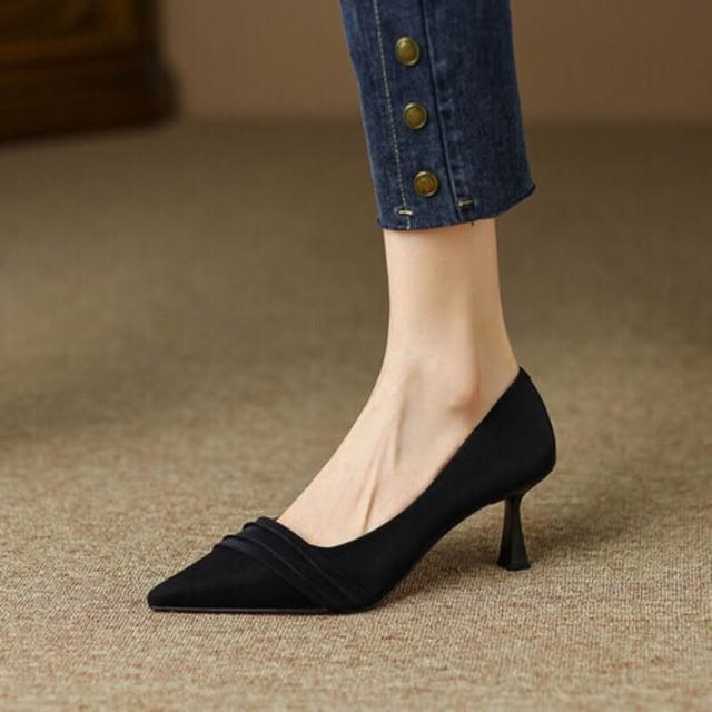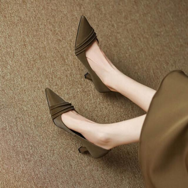 核桃小鋪 裏外全皮細跟尖頭淺口單鞋牛皮韓版時尚復古氣質高跟鞋四季鞋優雅 3
