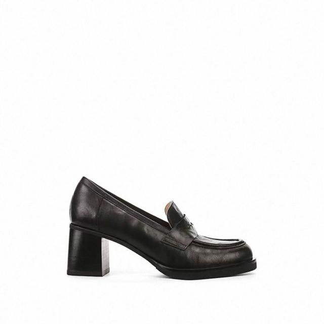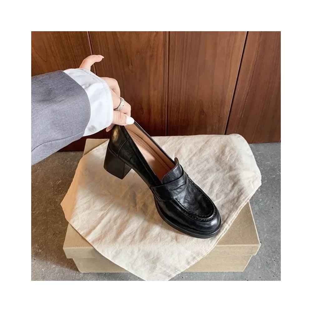 核桃小鋪 現貨復古法式圓頭7 粗跟馬皮紋一腳蹬懶人樂福單鞋女 小皮鞋 3