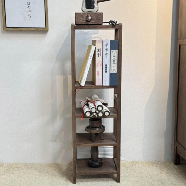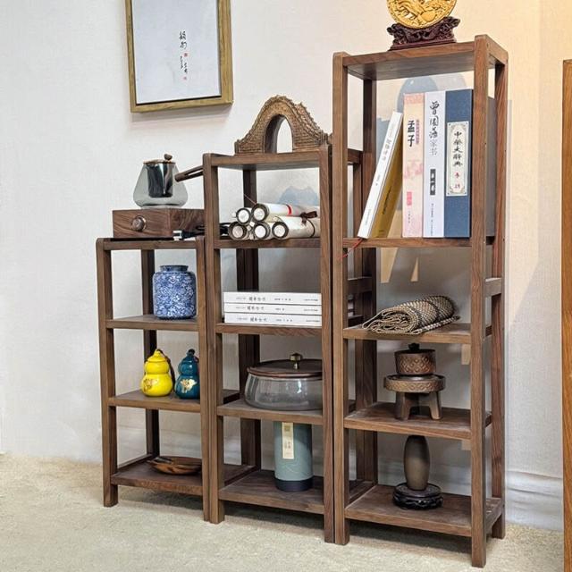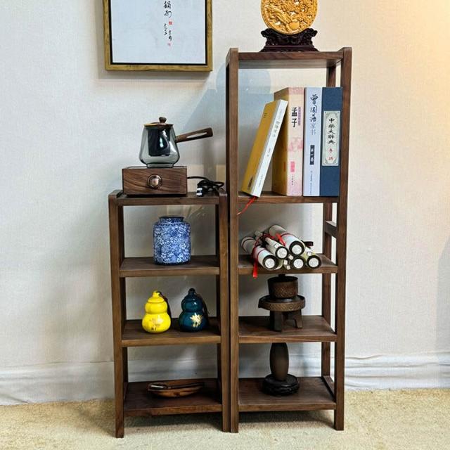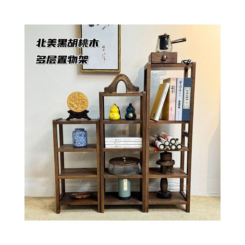 核桃小鋪 北美黑胡桃木置物架書架簡約花架架子陽臺多層落地鞋架實木收納架 3