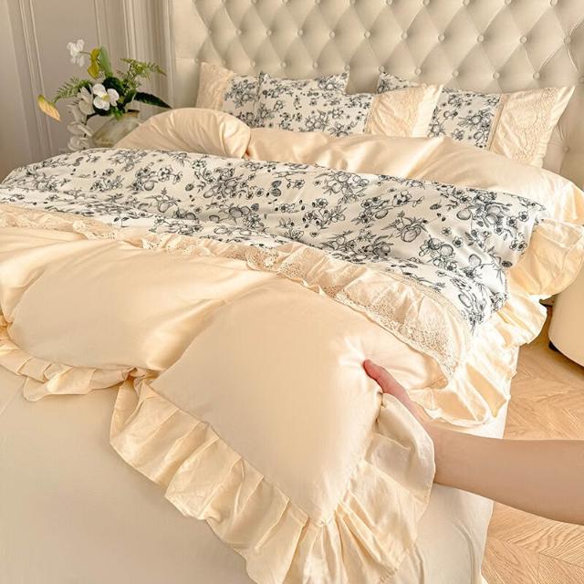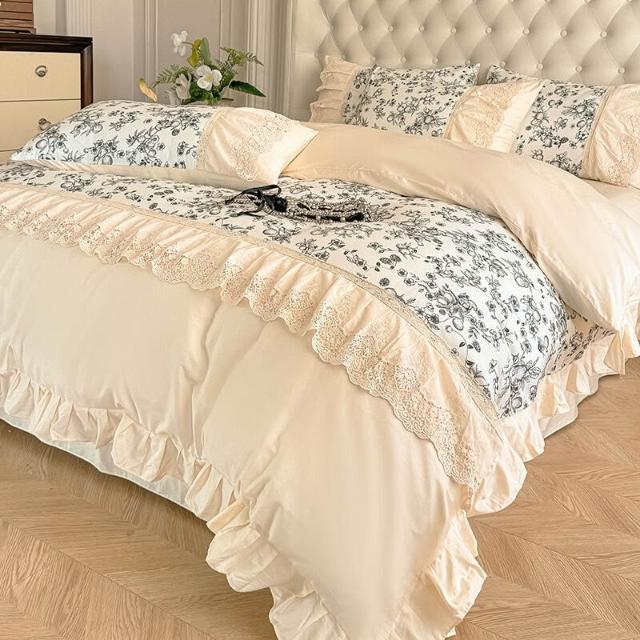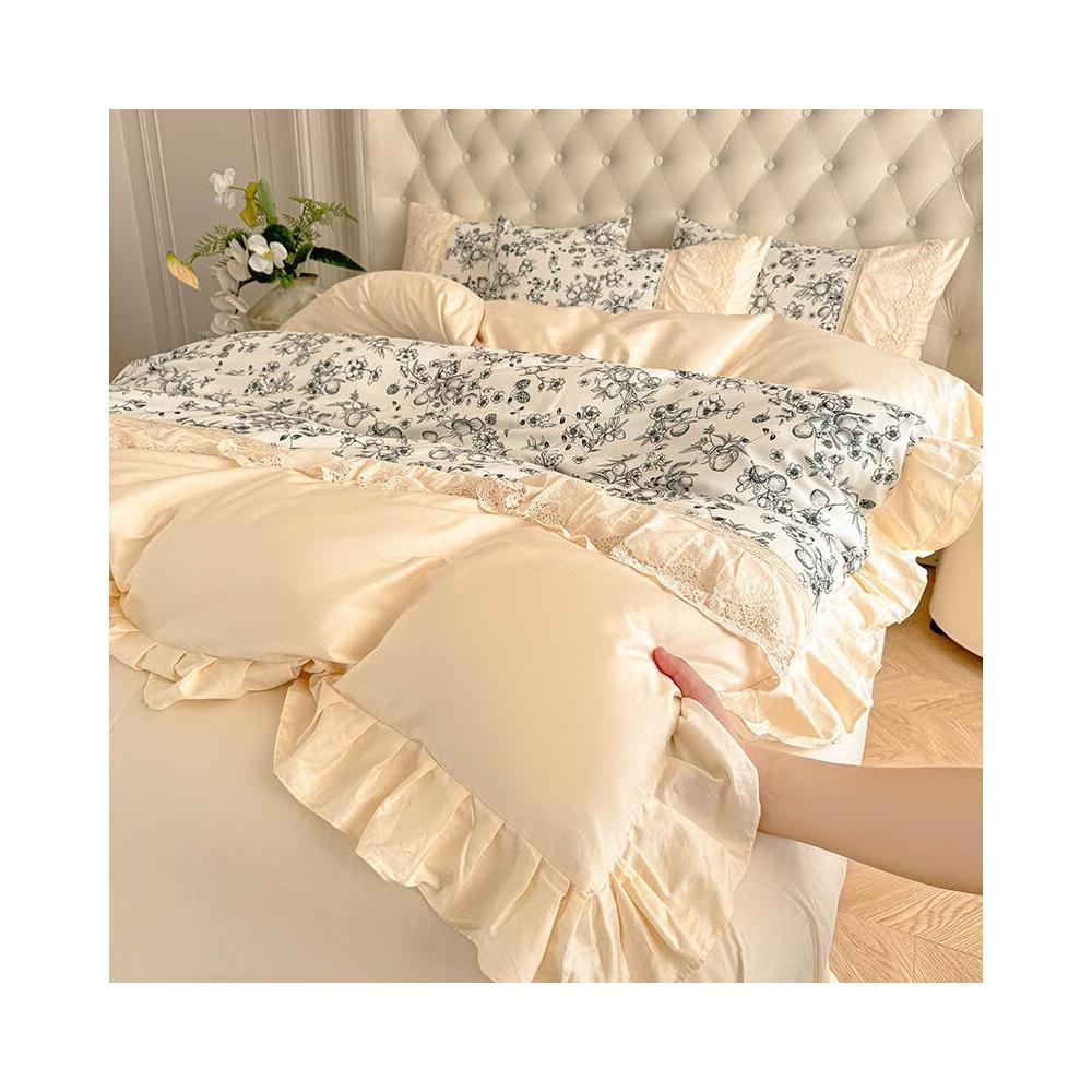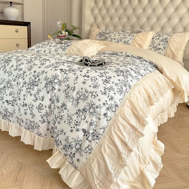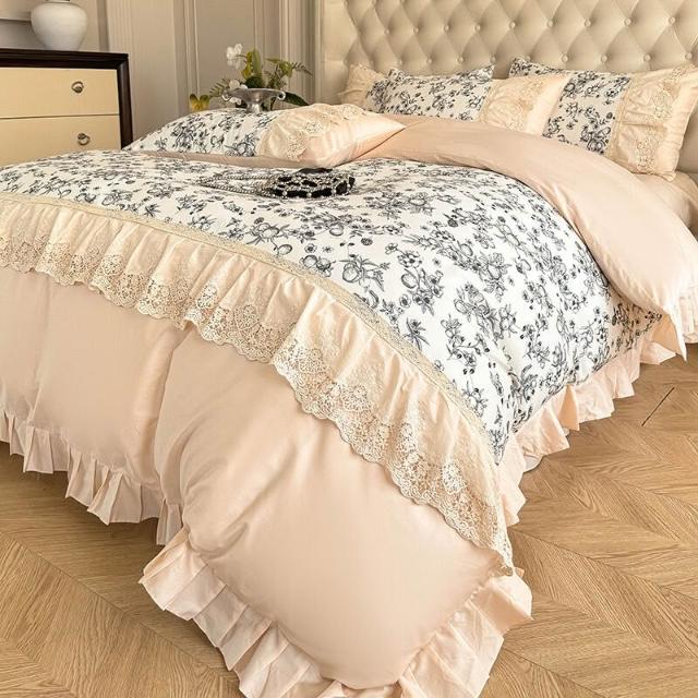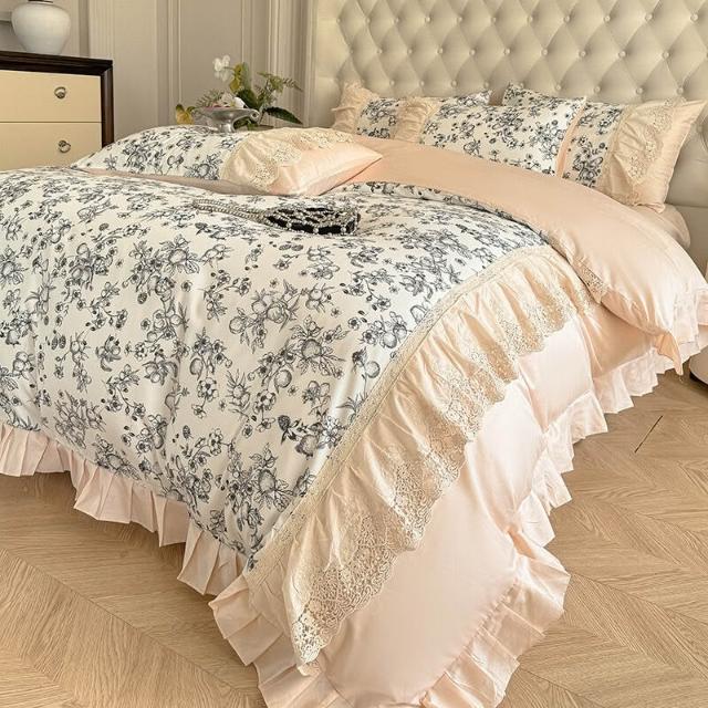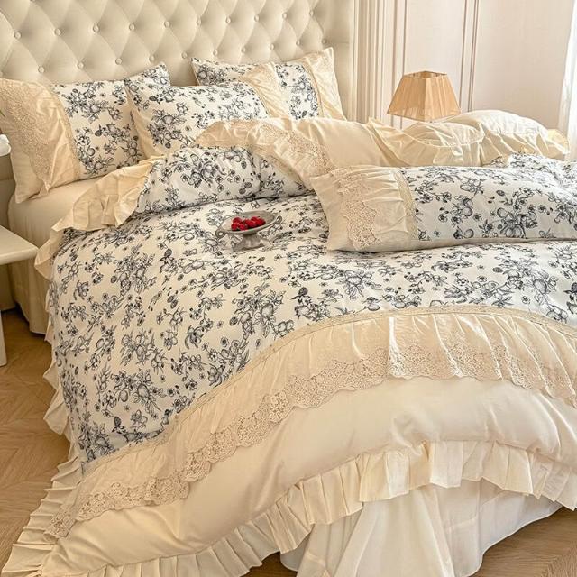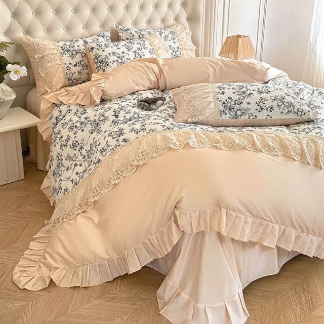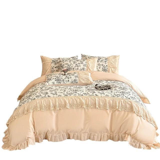核桃小鋪 新款韓版親膚棉四件套蕾絲公主風床裙被套四季通用床上用品4件套 3