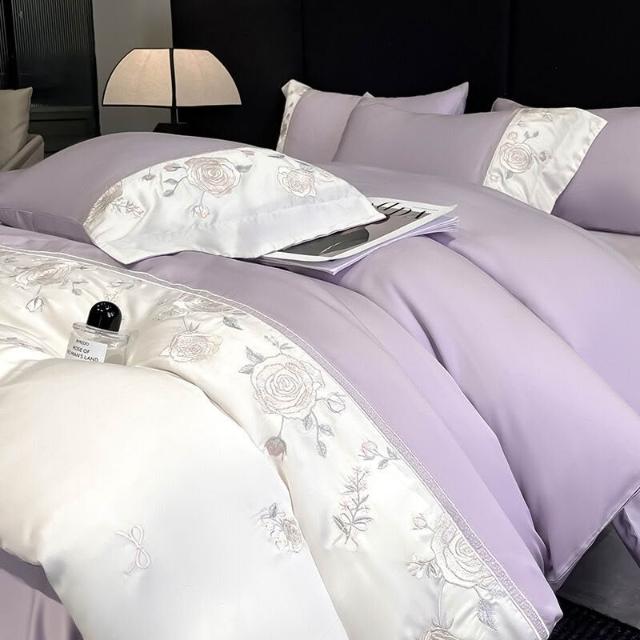 核桃小鋪 類夏季水洗天絲繡花四件套高級感法式冰絲裸睡被套1.5 1.8米床笠 3