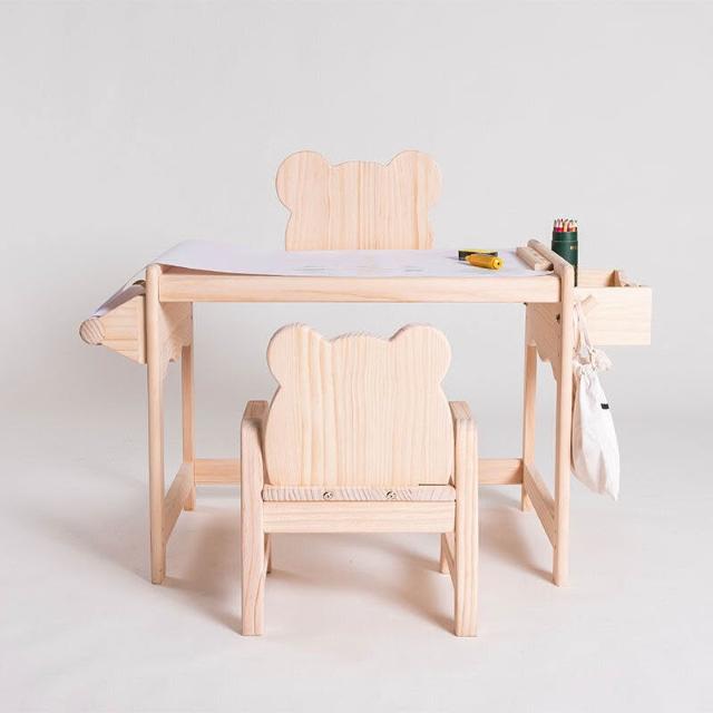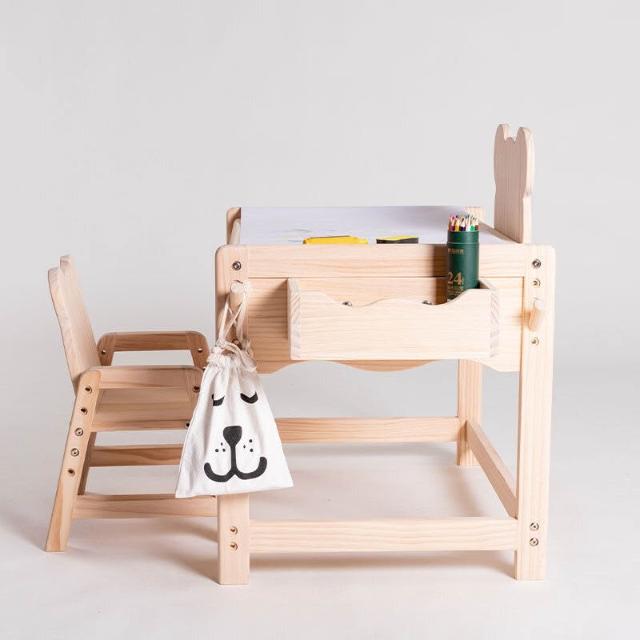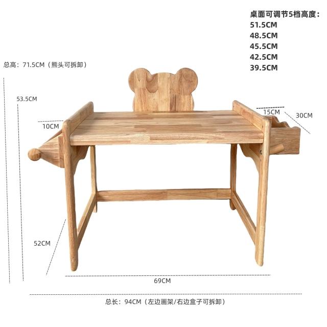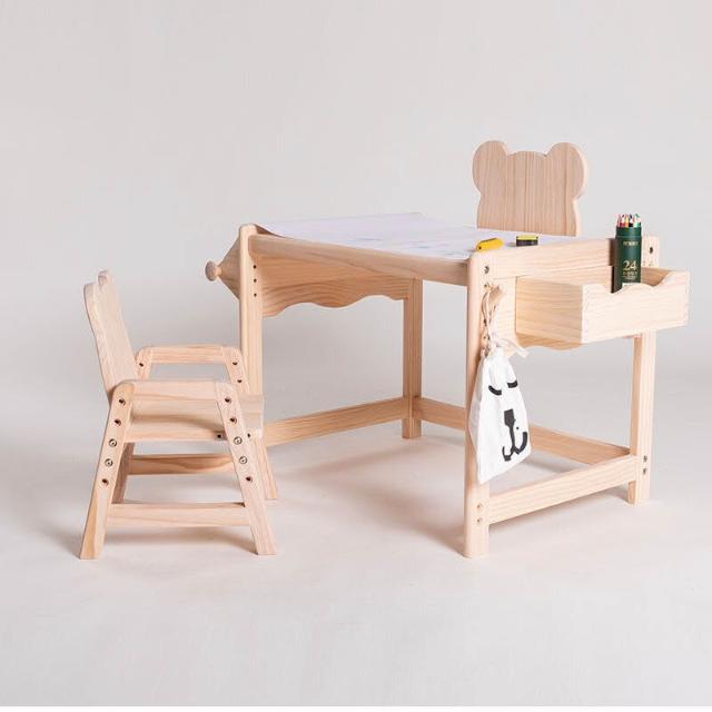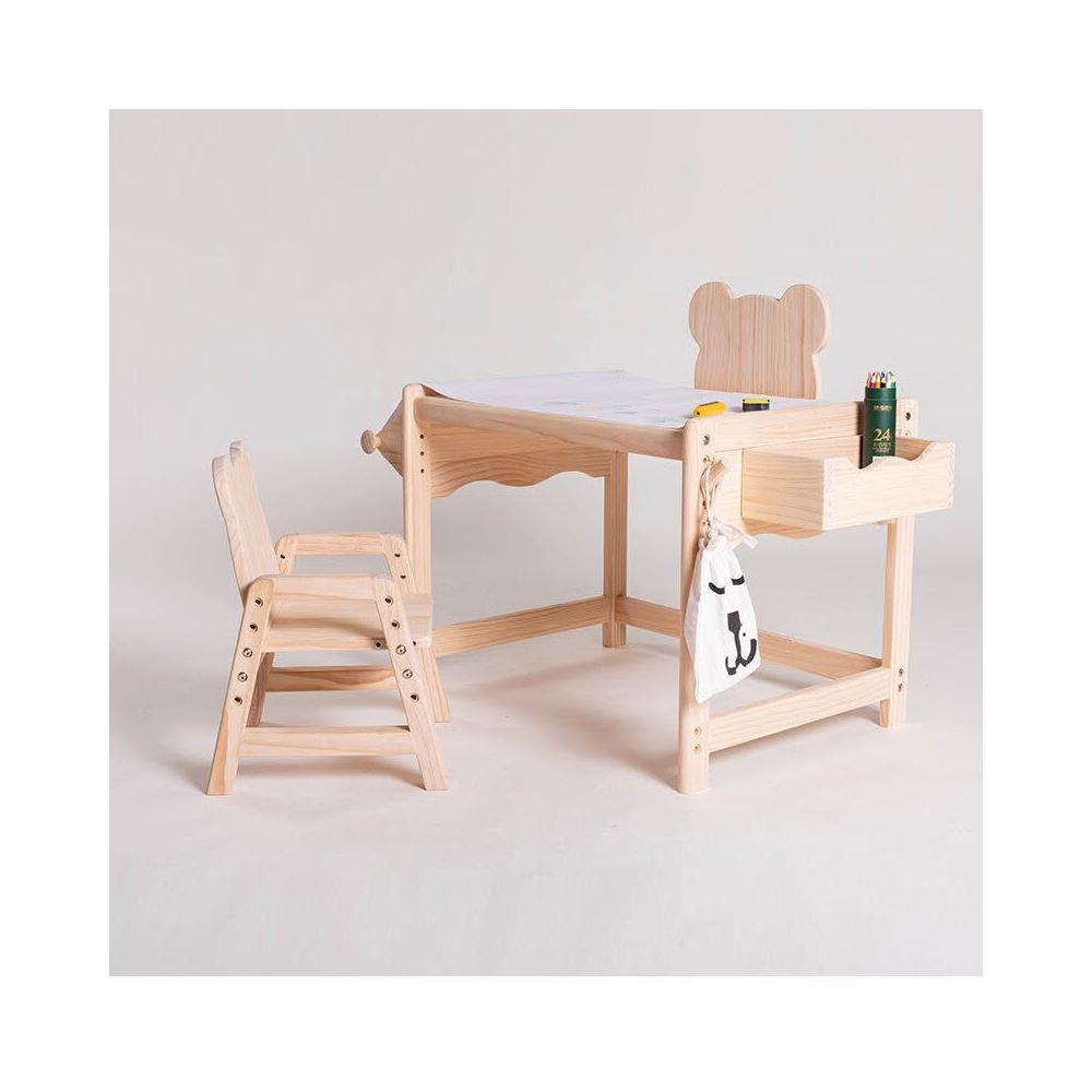 核桃小鋪 全實木兒童房畫畫學習桌創意多功能熊桌椅可升降高度松木課桌椅 3
