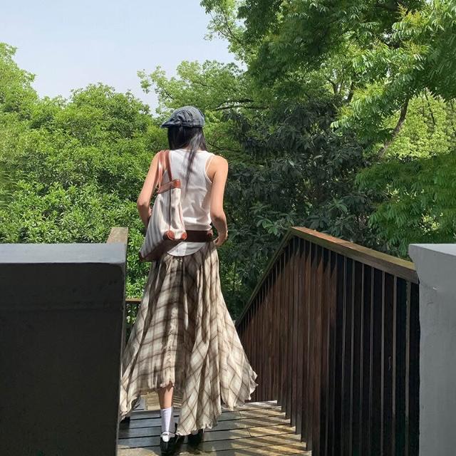 核桃小鋪 芸和魚不規則格紋半身裙女2025夏季新品復古百搭半裙 字長裙 3