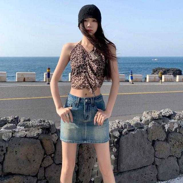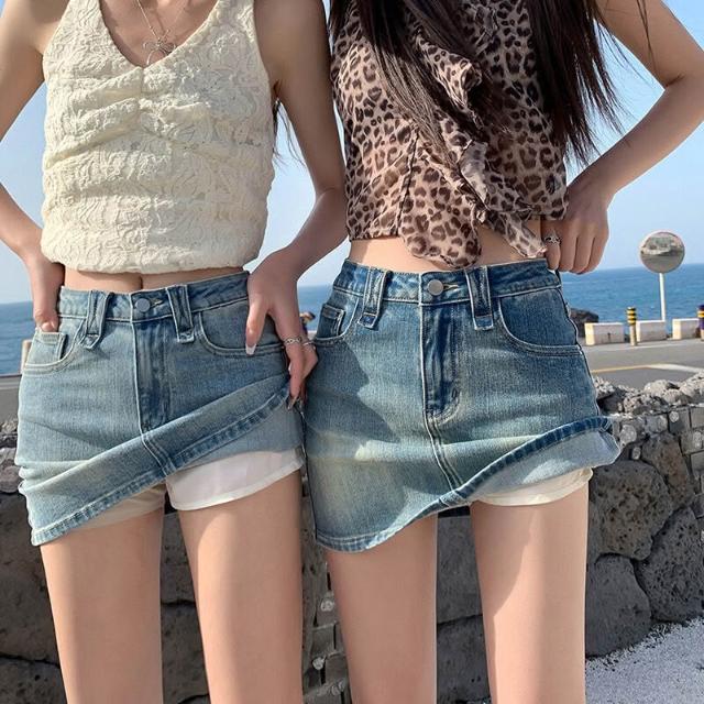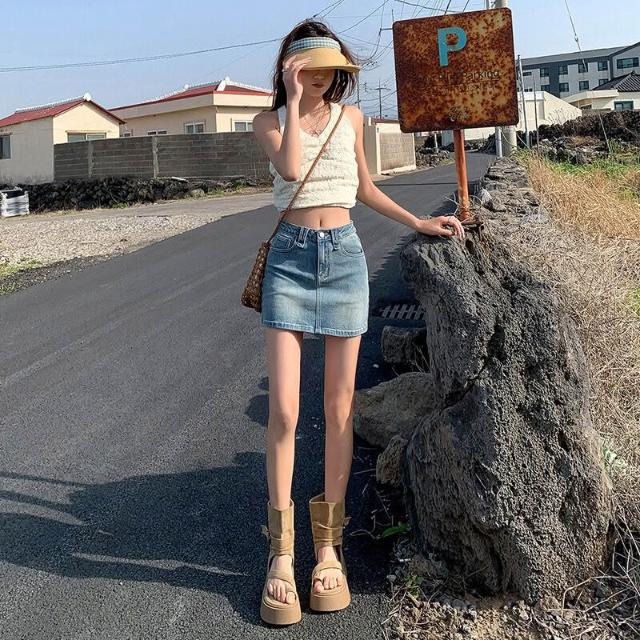 核桃小鋪 芸和魚美式辣妹牛仔短裙女高腰夏季顯瘦防走光 字復古半身裙 3