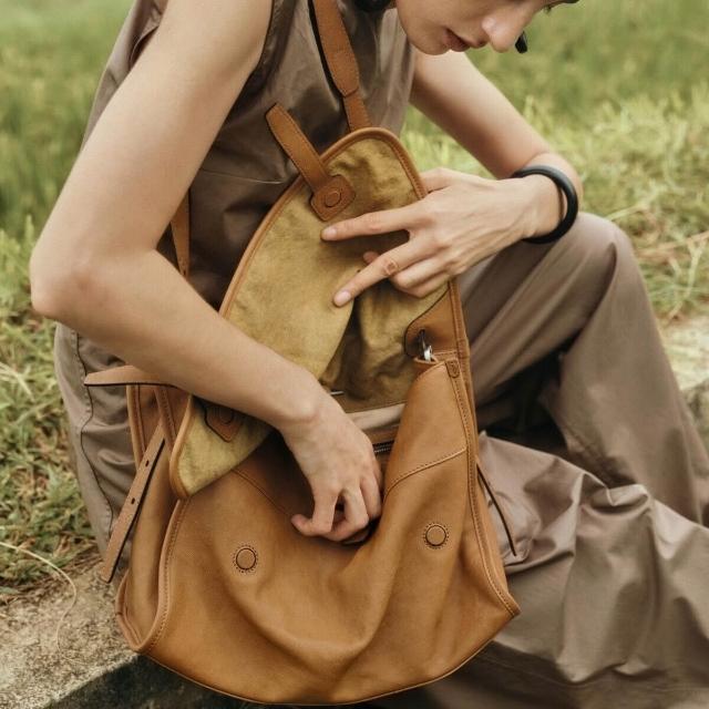 核桃小鋪 植鞣皮信使郵差包2025新款慵懶風松弛感大容量單肩包時尚托特包包 3