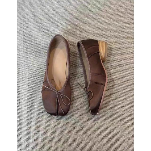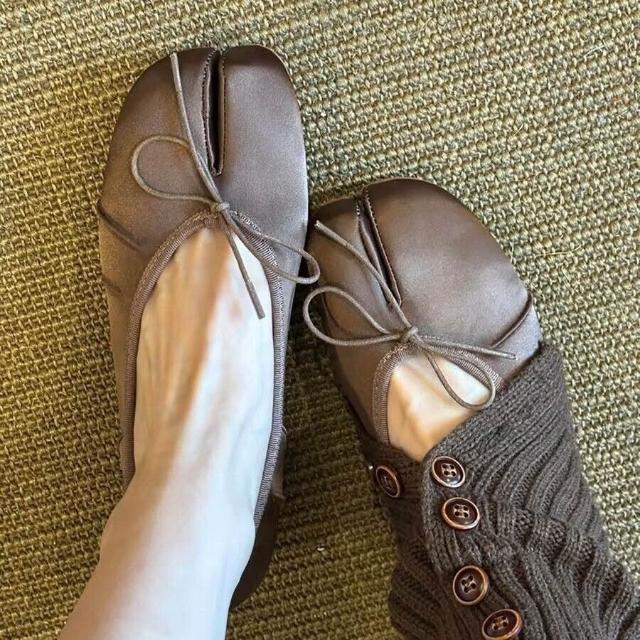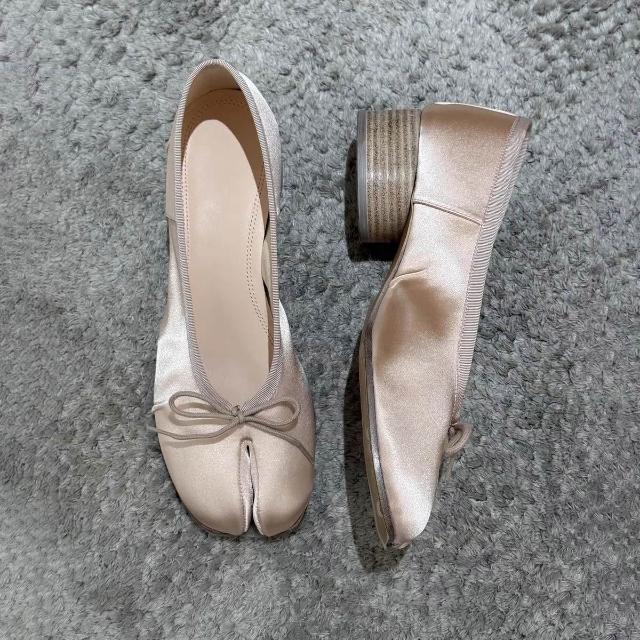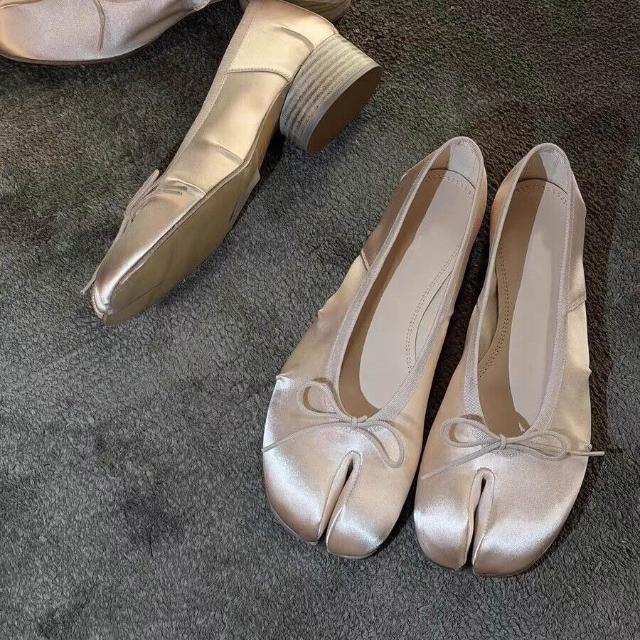 核桃小鋪 現貨版~2026春季新款綢緞圓頭分趾豬蹄平底瑪麗珍單鞋女褶皺芭蕾 3