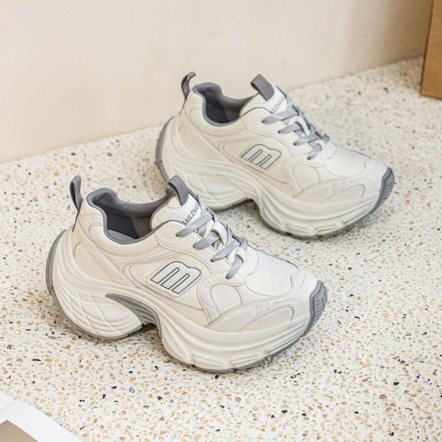 核桃小鋪 厚底老爹鞋女款新款秋季小個子增高鞋輕便網面透氣真皮運動鞋 3