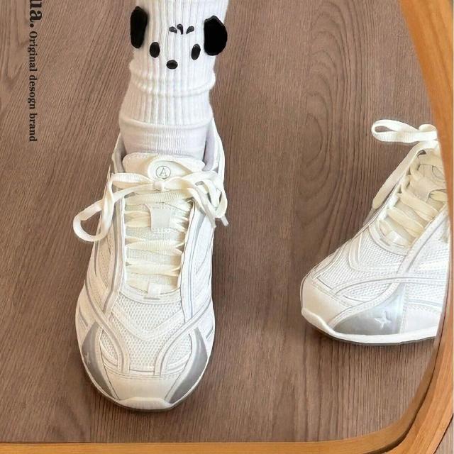 核桃小鋪 厚底網面德訓鞋女款2026新款春季軟底輕便賽車鞋圓頭休閑運動鞋子 3