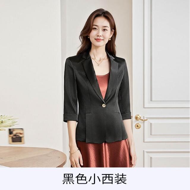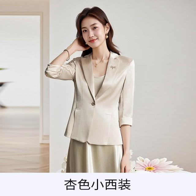 核桃小鋪 七分袖西裝外套女春夏新款氣質醋酸緞面高級感小個子短款時尚西服 3