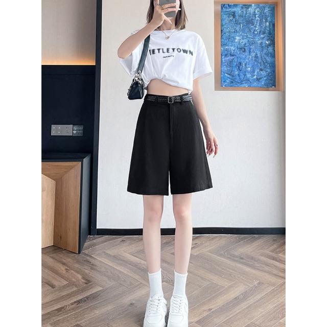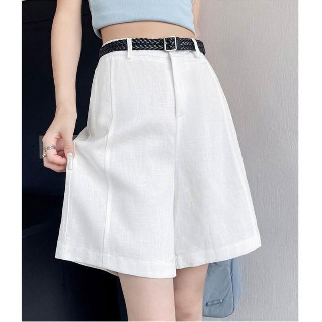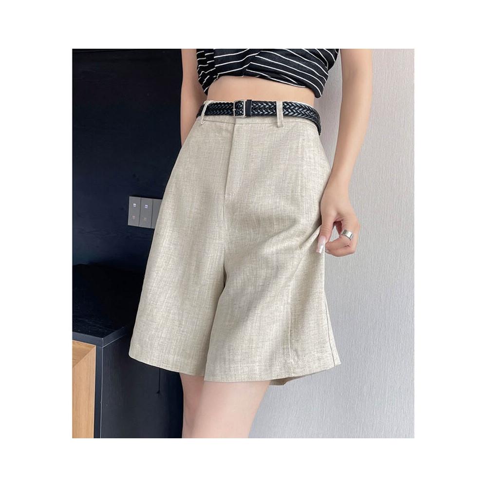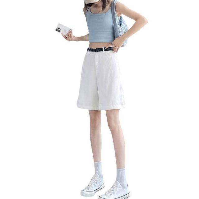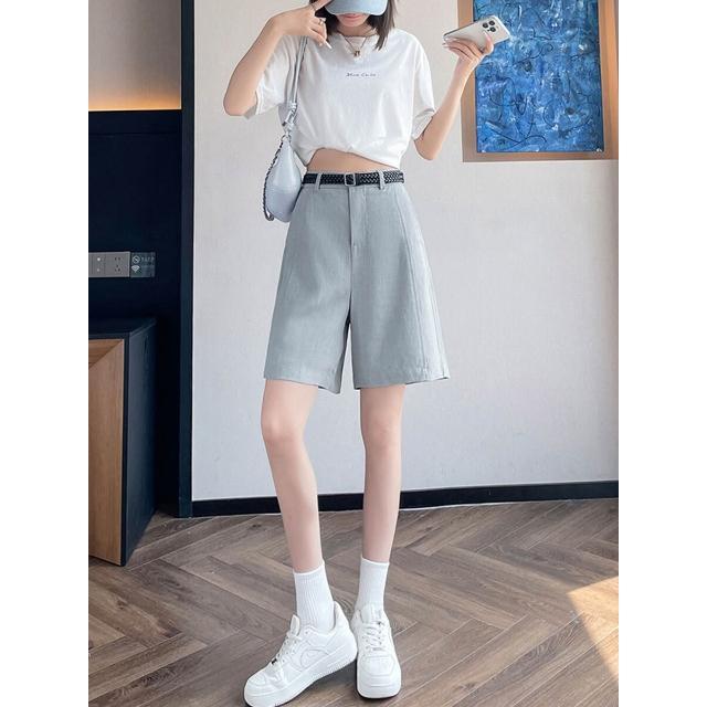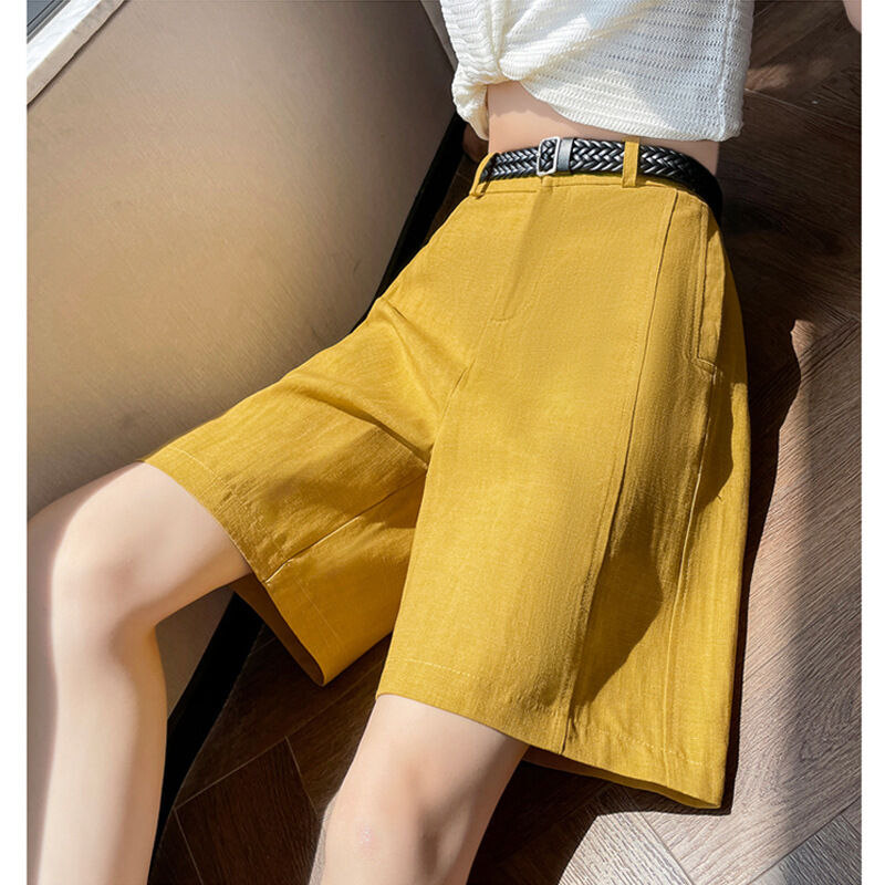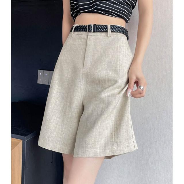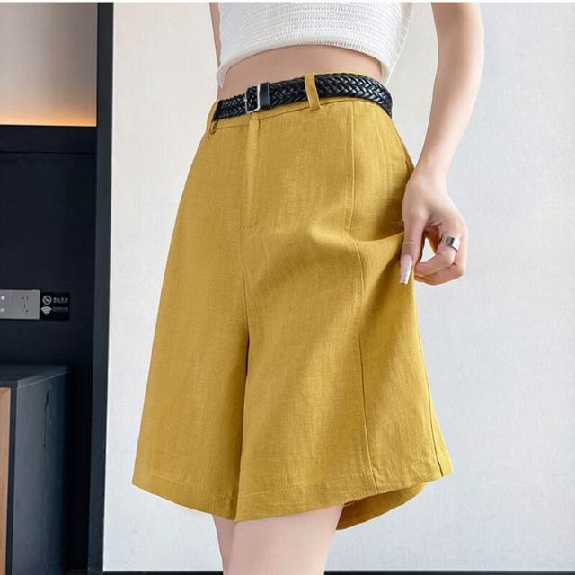 核桃小鋪 天絲亞麻五分褲女夏季淺藍色直筒休閑短褲薄款高腰 字棉麻闊腿褲 3
