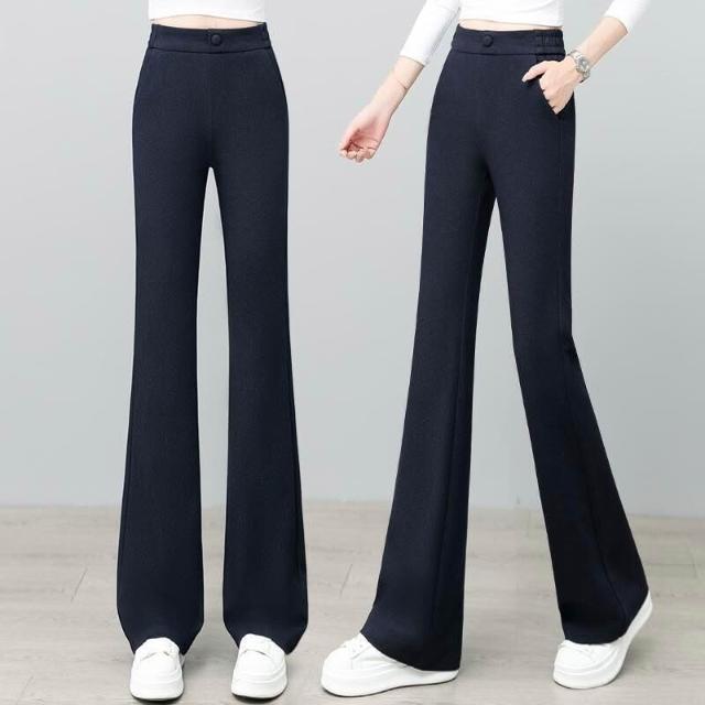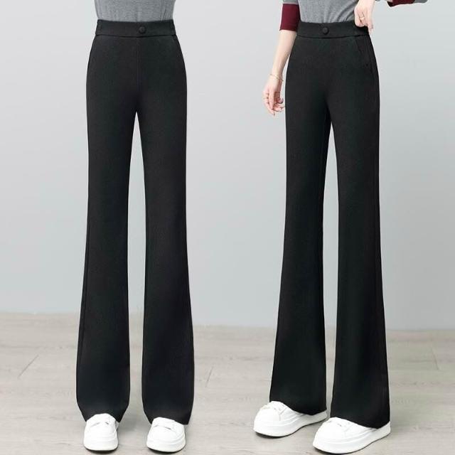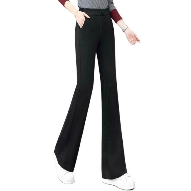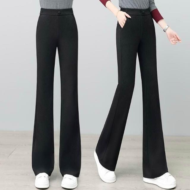 核桃小鋪 黑色微喇褲女2025新款秋高腰彈力顯瘦西裝褲子職業通勤休閑喇叭褲 3
