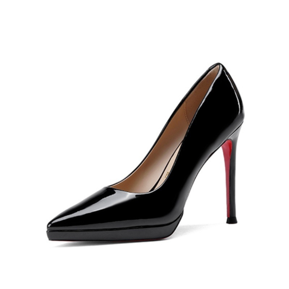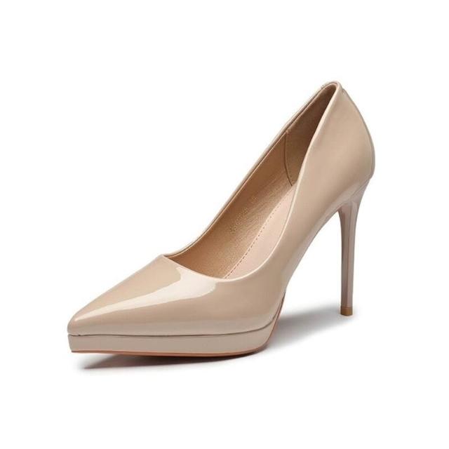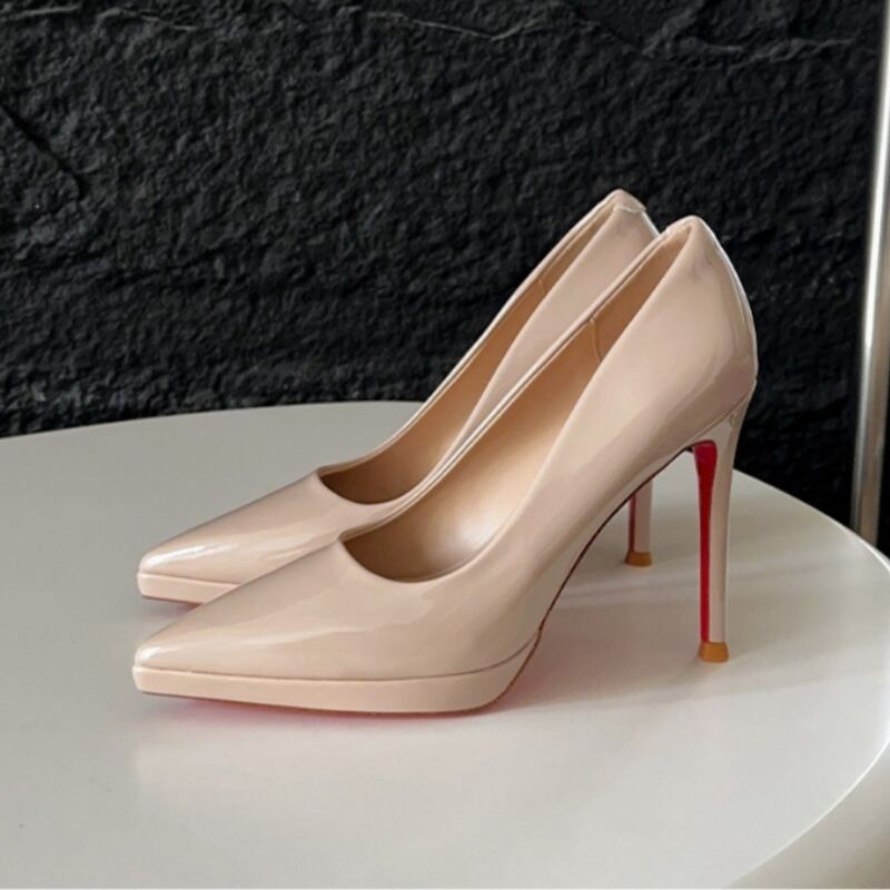 核桃小鋪 漆皮高跟鞋女尖頭防水臺不累腳細跟通勤裸色單鞋紅底高跟鞋 3
