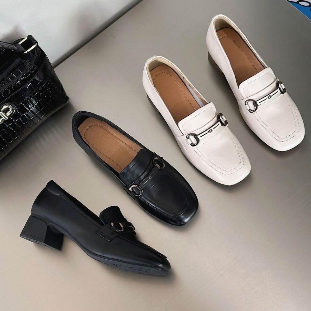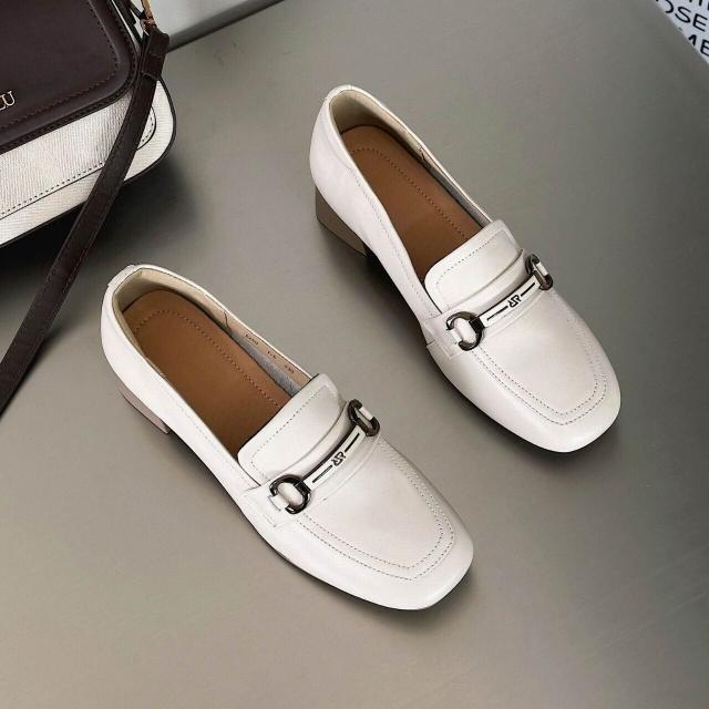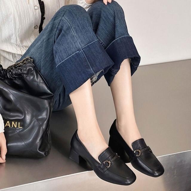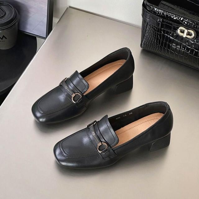 核桃小鋪 2026新款真皮粗跟樂福鞋低幫方頭單鞋百搭休閑羊皮女士氣質小皮鞋 3