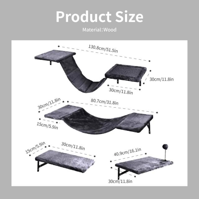 核桃小鋪 家用壁掛式貓爬架貓跳板墻面裝飾墊多功能多貓家庭玩耍休息貓抓板 3