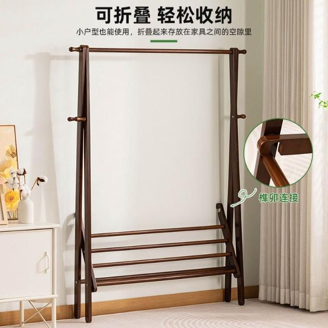 核桃小鋪 實木衣帽架衣架落地掛衣架掛衣服的家用落地臥室立式簡約架子嚴選 3