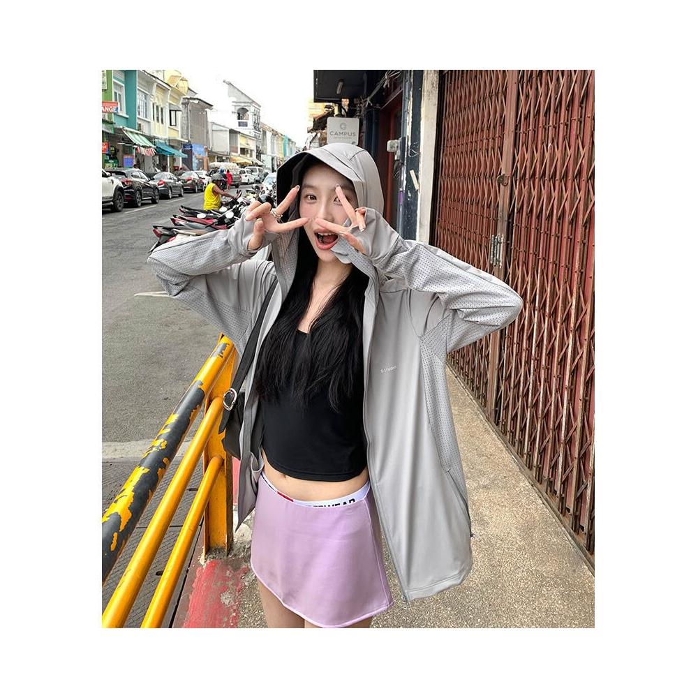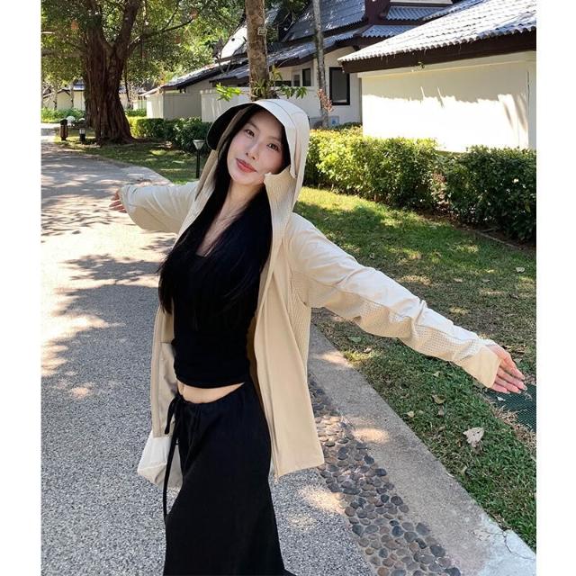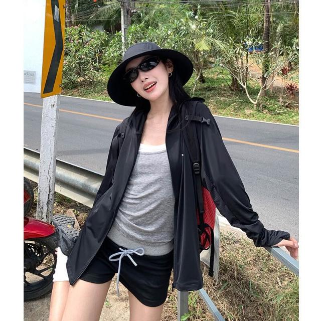 核桃小鋪 涼感 50+防曬衣女夏防紫外線黑膠帽檐原紗防曬服戶外透氣皮膚衣 3