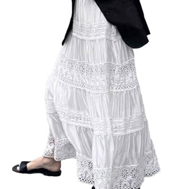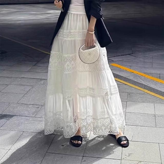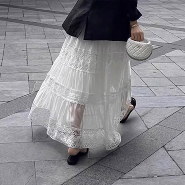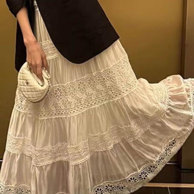 核桃小鋪 早春2026感裙子新款拼接蕾絲镂空設計白色半身裙法式氣質長裙 3
