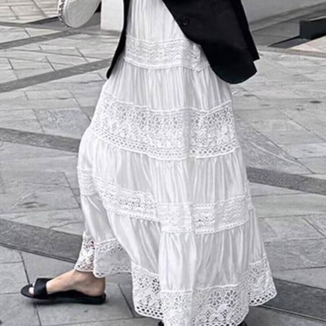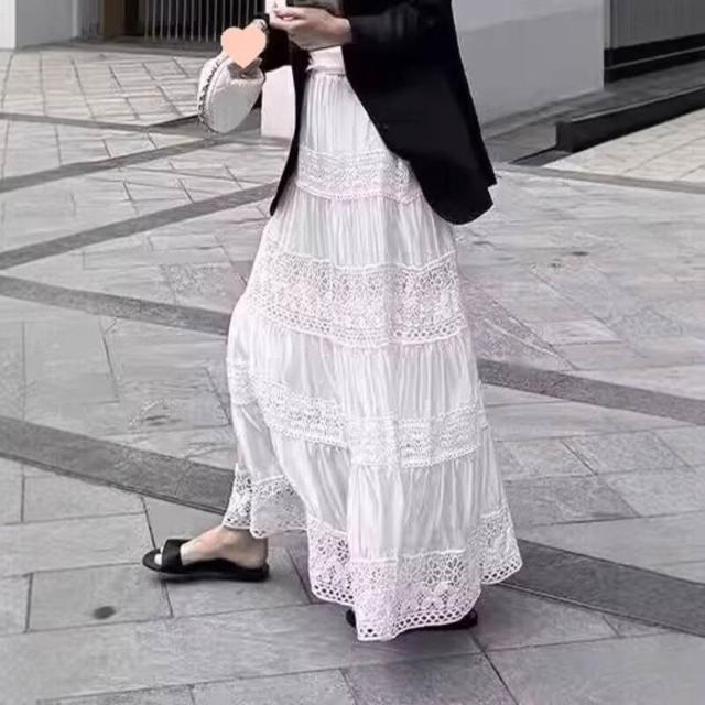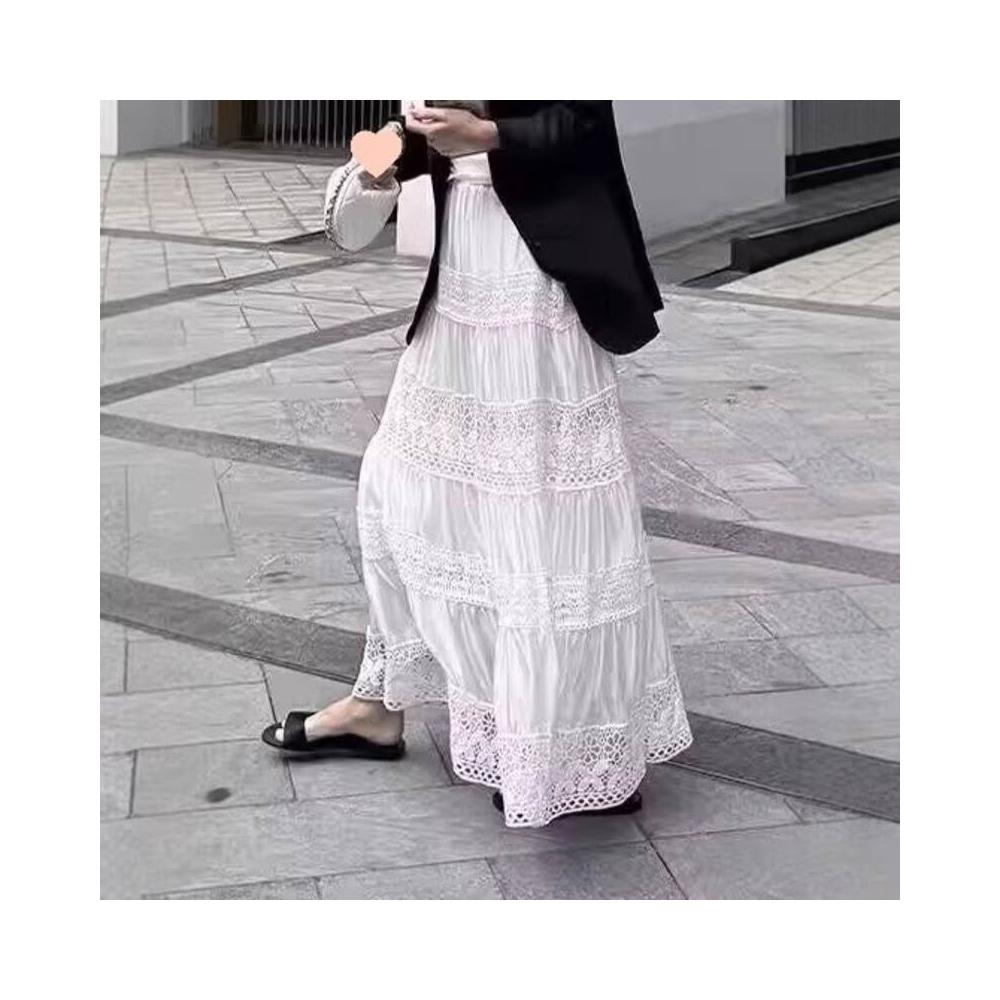 核桃小鋪 早春2026感裙子新款拼接蕾絲镂空設計白色半身裙法式氣質長裙 3