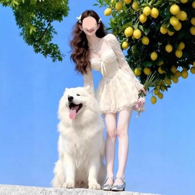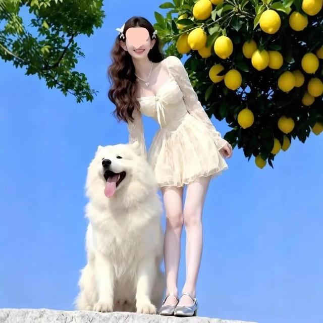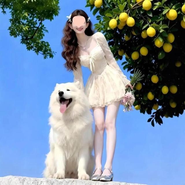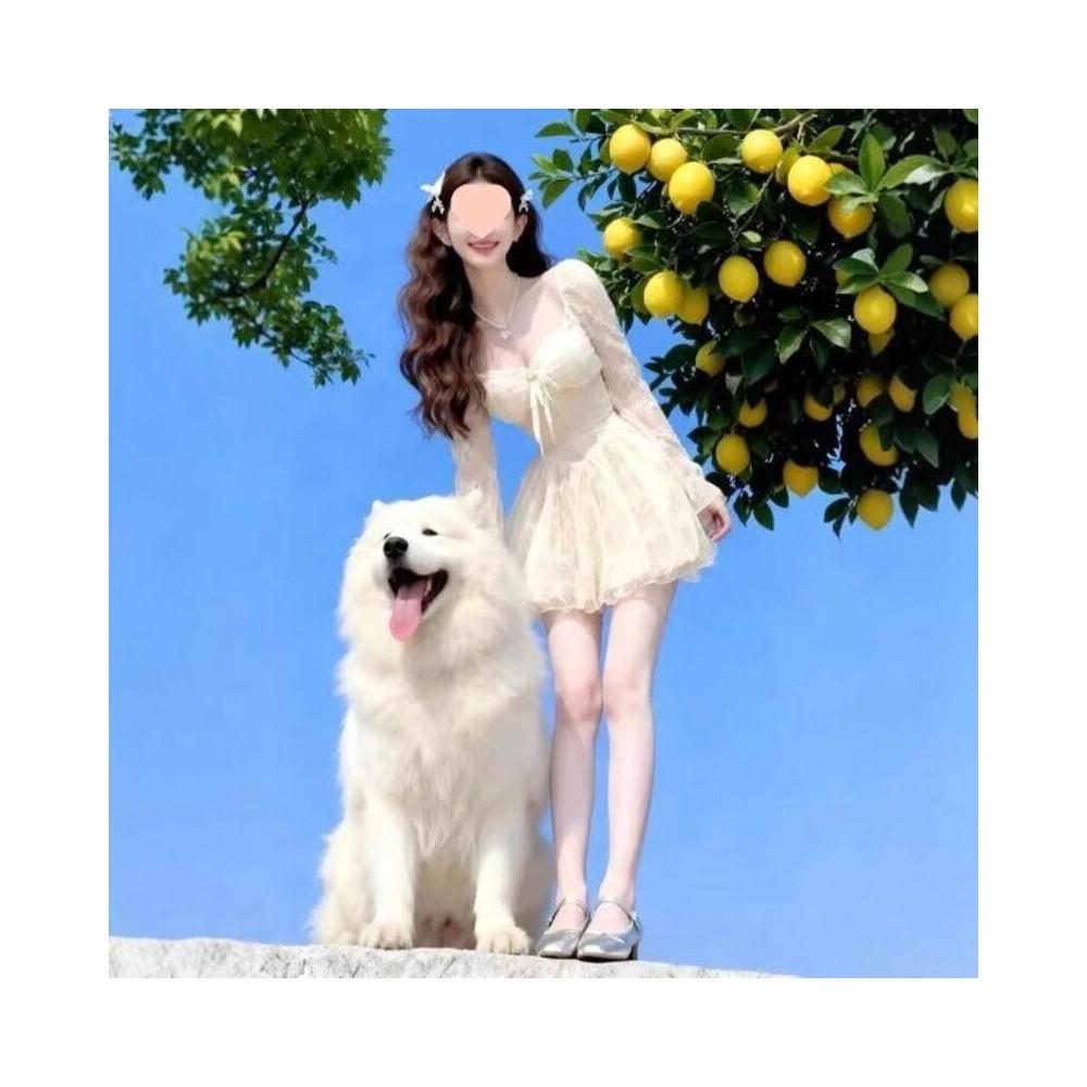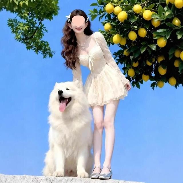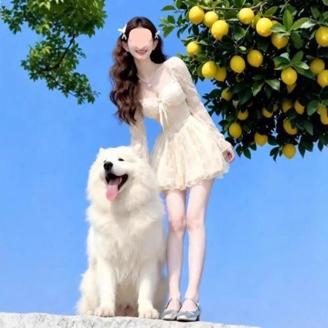 核桃小鋪 2026春季高腰方領蕾絲公主裙甜美清新修身針織連衣裙 3