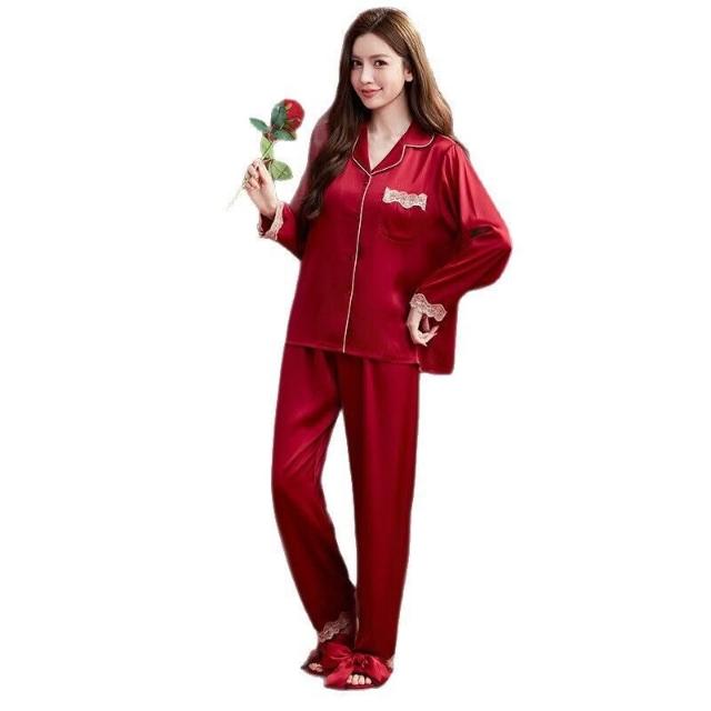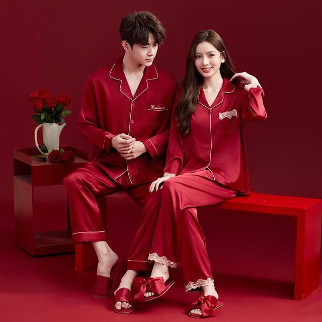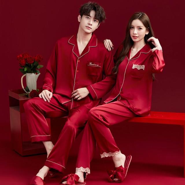 核桃小鋪 2026新款結婚情侶睡衣女春秋冰絲長袖本命年紅色套裝男款大碼新婚 3
