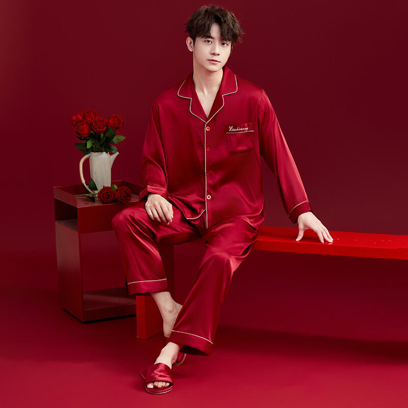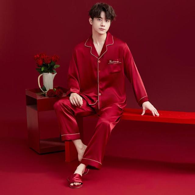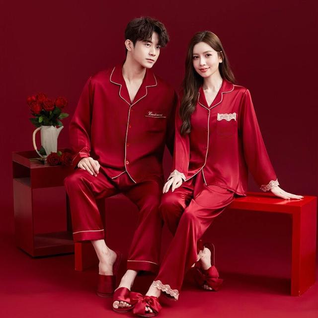 核桃小鋪 2026新款結婚情侶睡衣女春秋冰絲長袖本命年紅色套裝男款大碼新婚 3