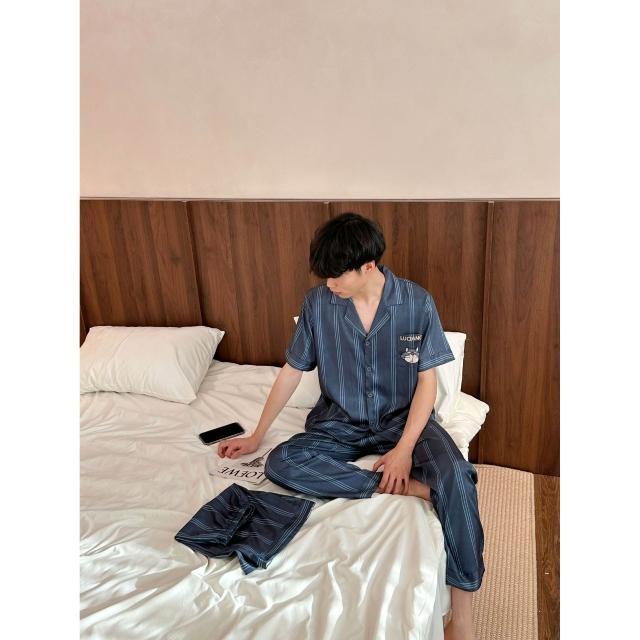 核桃小鋪 圓崽貓咪情侶卡通印花新款男士女士袖長褲三件套家居服 3