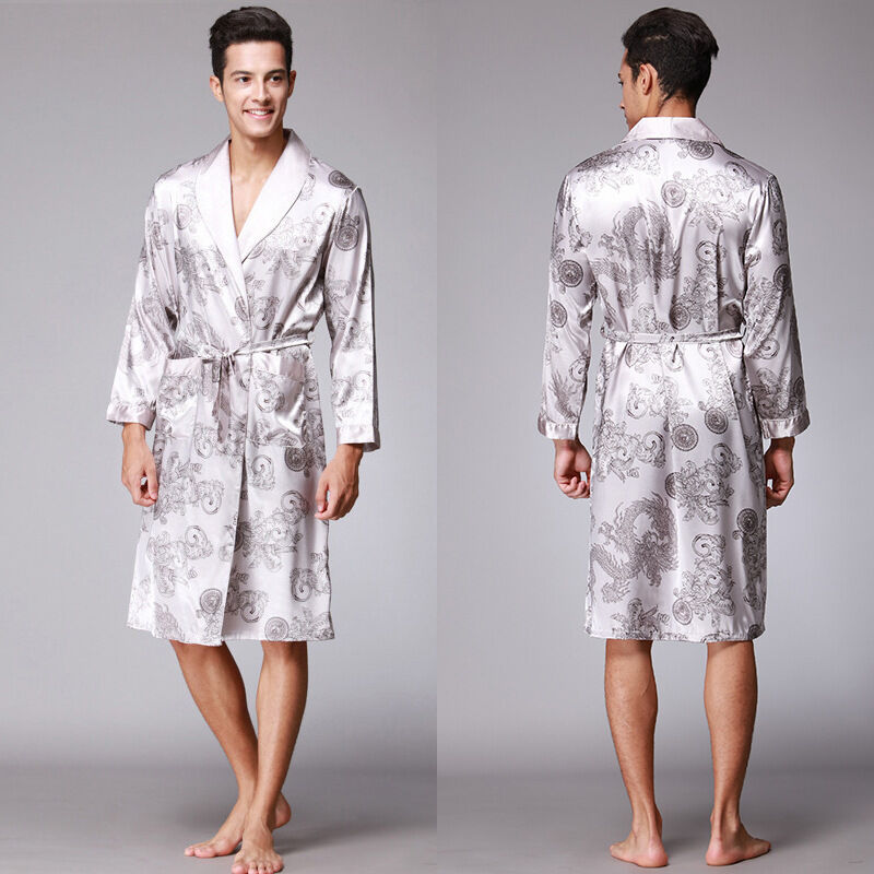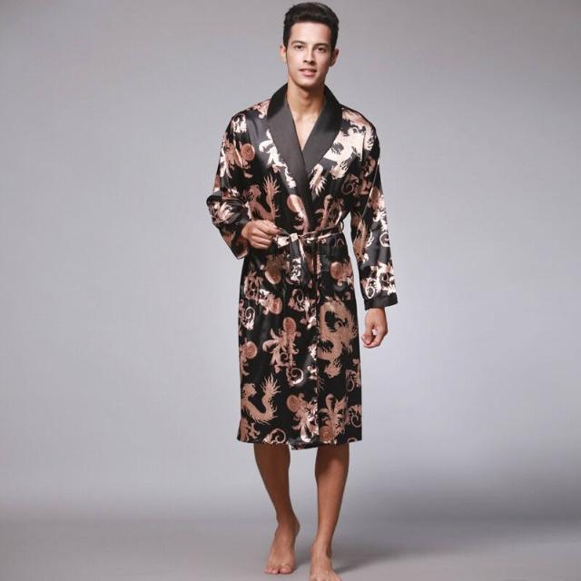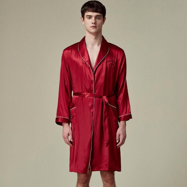 核桃小鋪 耀婷亞馬遜可外穿睡袍絲綢冰絲男士睡衣長袖浴袍家居服批發 032 3