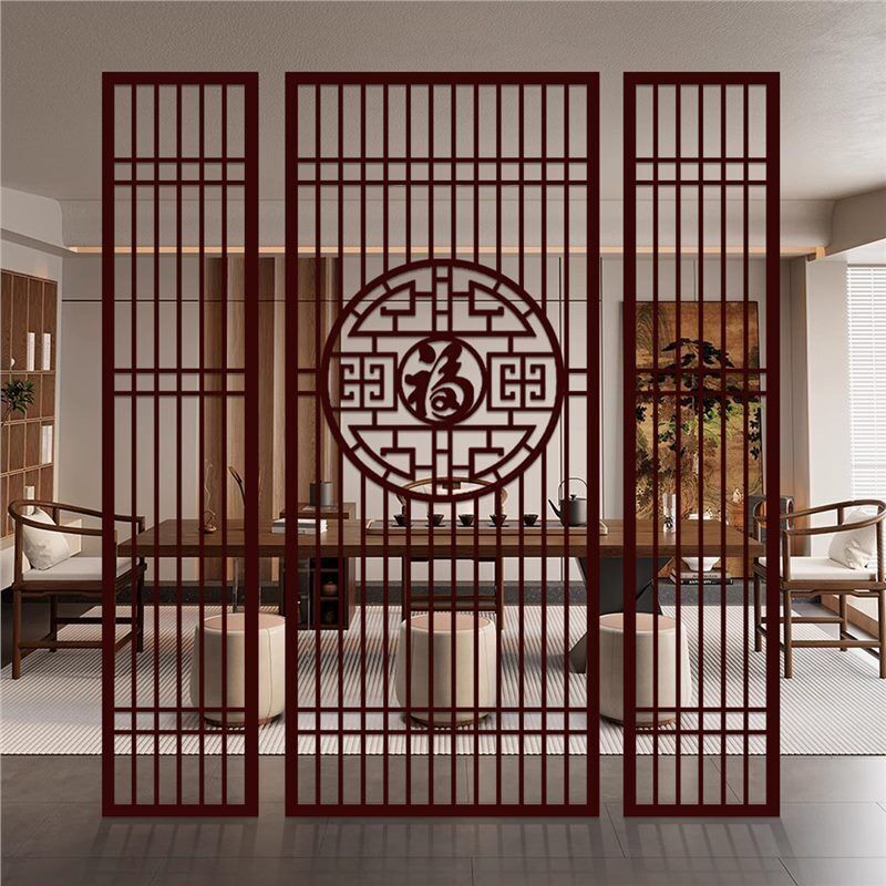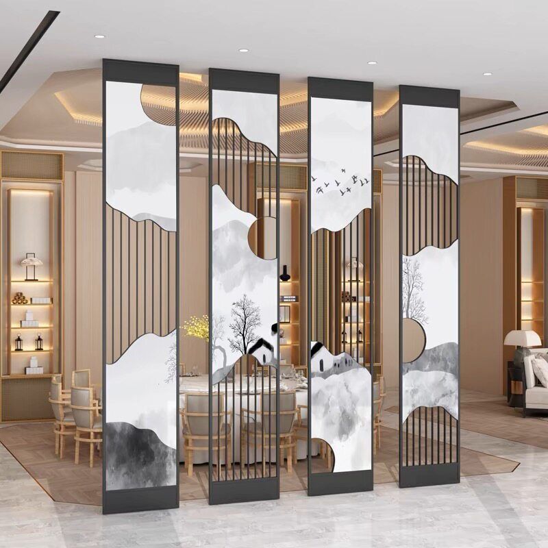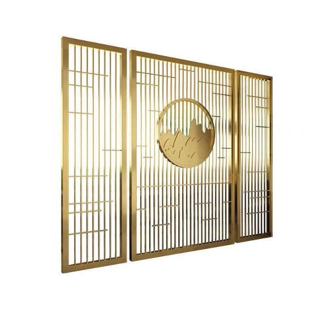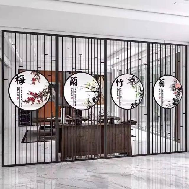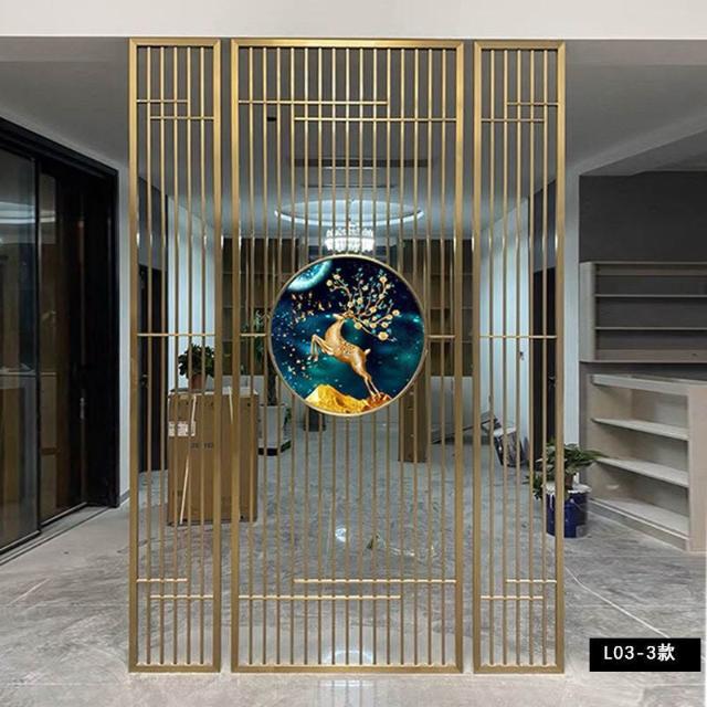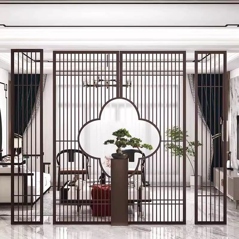 核桃小鋪 不銹鋼屏風隔斷客廳酒店餐廳大堂辦公室鐵藝新中式入戶正對門格柵 3
