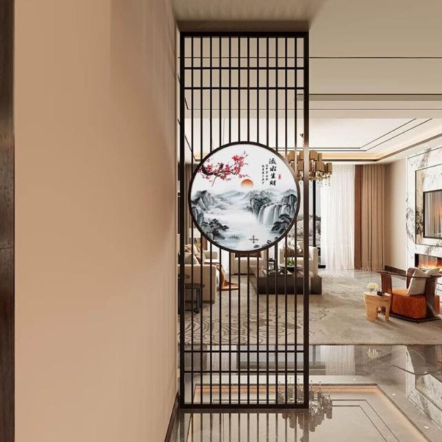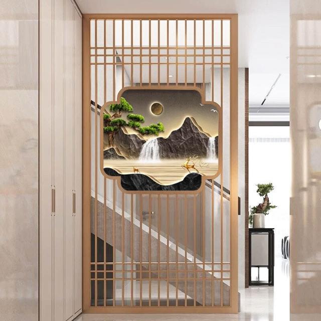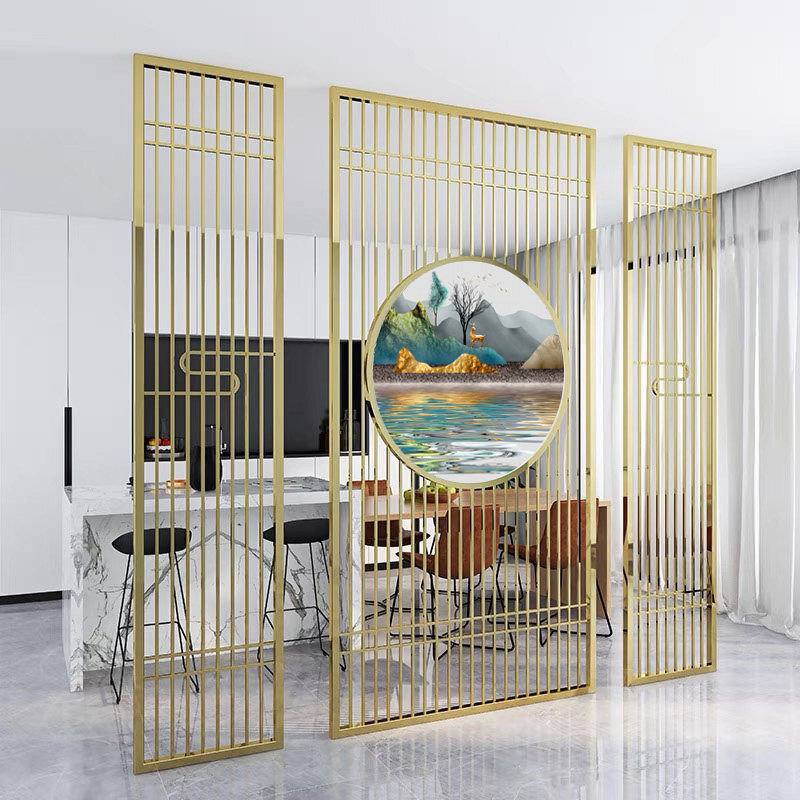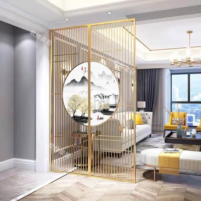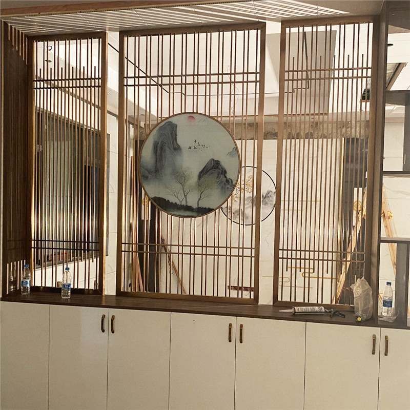 核桃小鋪 不銹鋼屏風隔斷客廳酒店餐廳大堂辦公室鐵藝新中式入戶正對門格柵 3