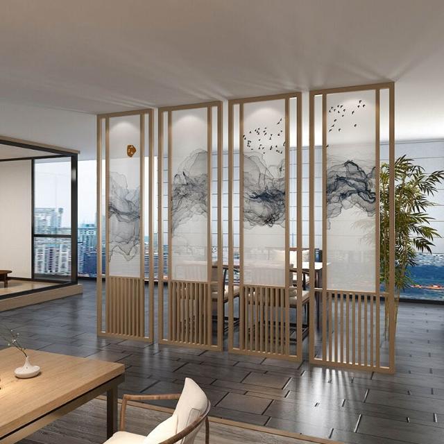 核桃小鋪 中式實木柵欄屏風進門隔斷裝飾入戶客廳茶室酒店遮擋背景墻紗座屏 3
