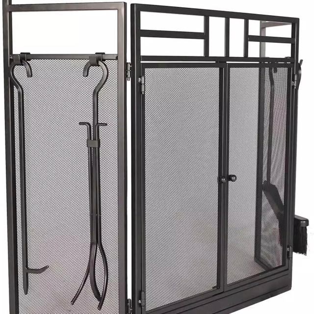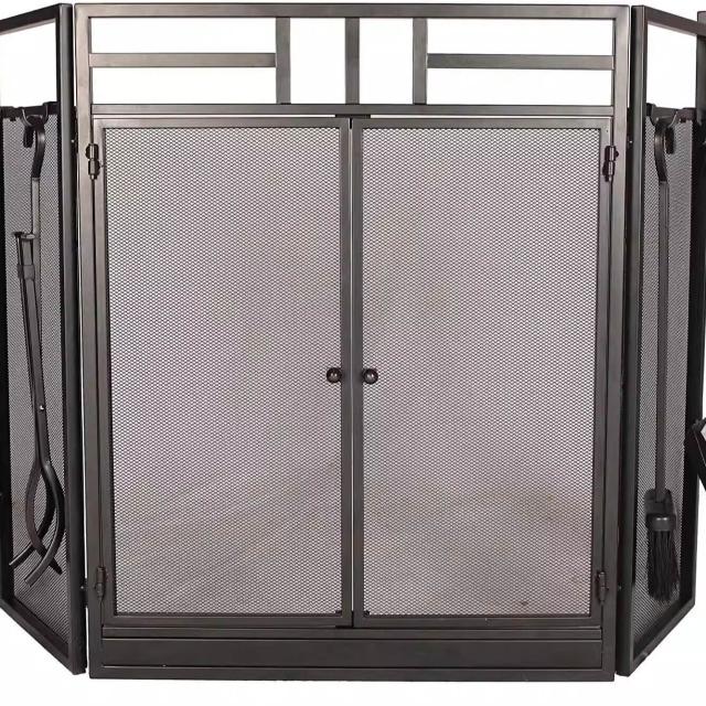 核桃小鋪 屏風火爐壁爐屏風 防火欄 別墅壁爐工具歐式鐵藝 壁爐架 壁爐罩 3