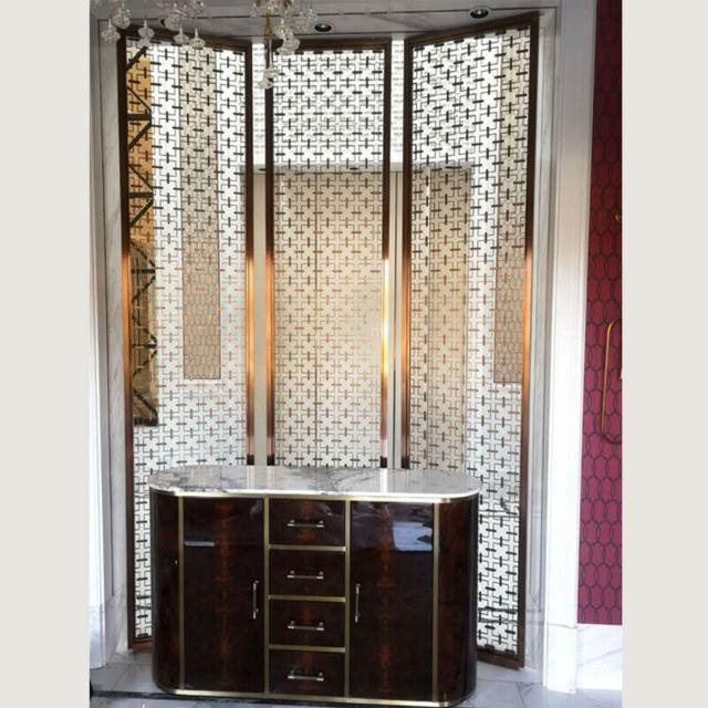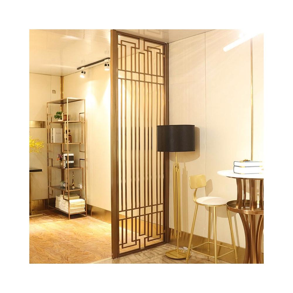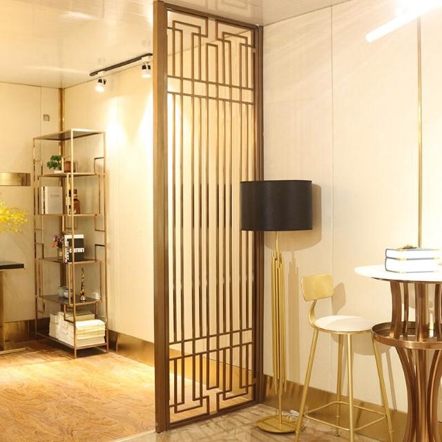 核桃小鋪 山東金色鐵藝隔斷屏風入戶玄關 電鍍古銅色新中式屏風隔斷臥室 3
