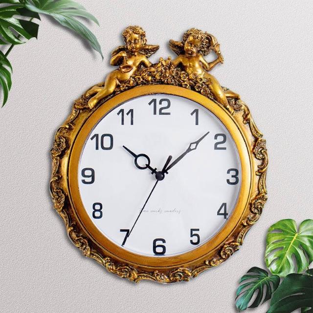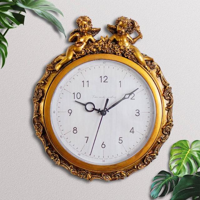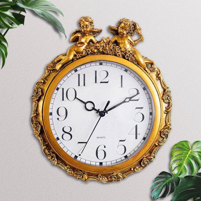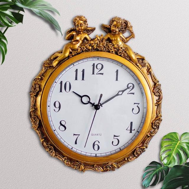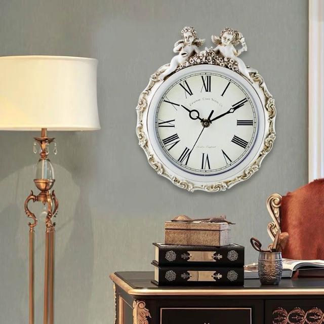 核桃小鋪 歐式復古時鐘創意客廳樹脂典雅掛鐘 臥室書房靜音時鐘裝飾工藝品 3