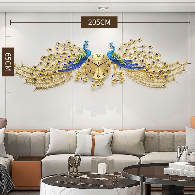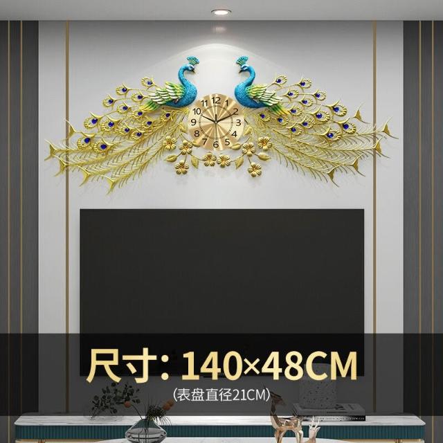 核桃小鋪 戀妝孔雀掛鐘表客廳吉祥新中式現代簡約靜音石英掃秒鐘裝飾壁鐘 3