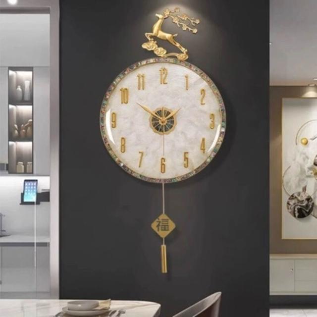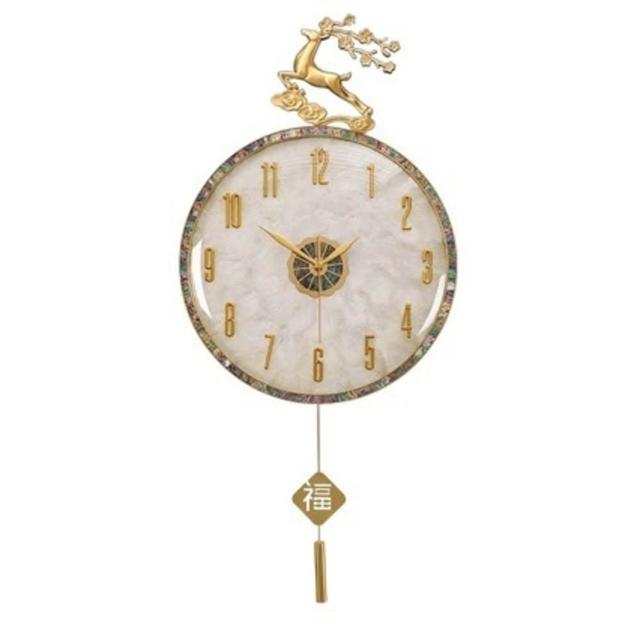 核桃小鋪 輕奢貝殼合金掛鐘新款客廳餐廳鐘表時鐘家用靜音現代簡約高檔掛墻 3