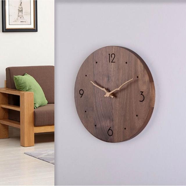 核桃小鋪 白臘木實木掛鐘北歐簡約現代圓形鐘表客廳臥室靜音原木質創意時鐘 3