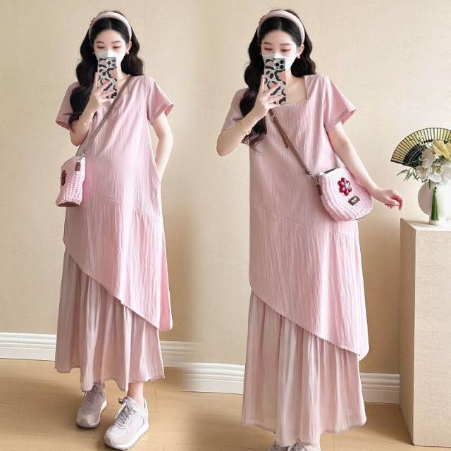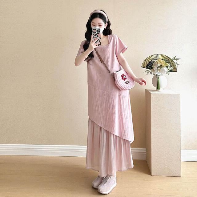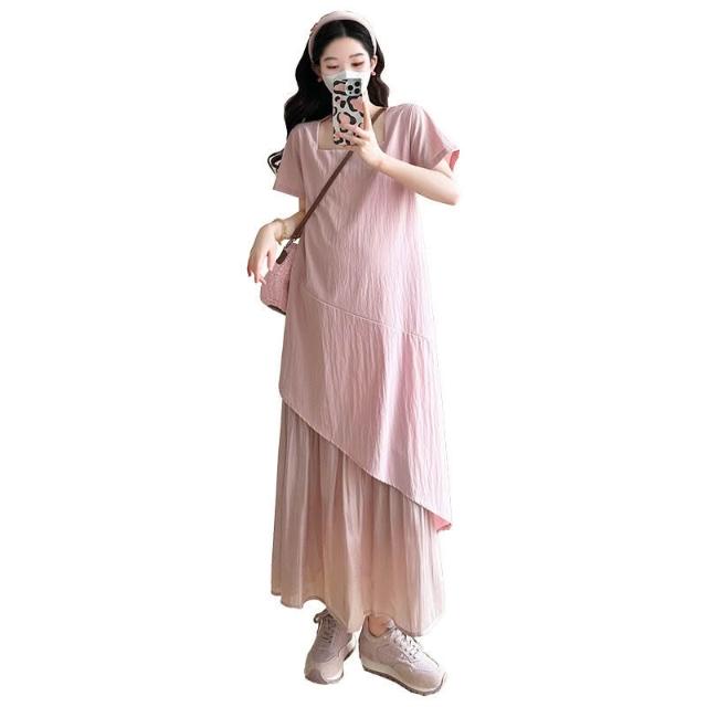 核桃小鋪 實拍現貨2025夏季簡約寬松氣質孕婦短袖連衣裙 3