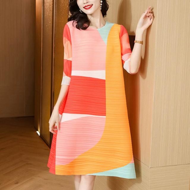 核桃小鋪 歐美 褶皺連衣裙女夏款面料新款大碼女裝胖 高級孕婦裙子 3