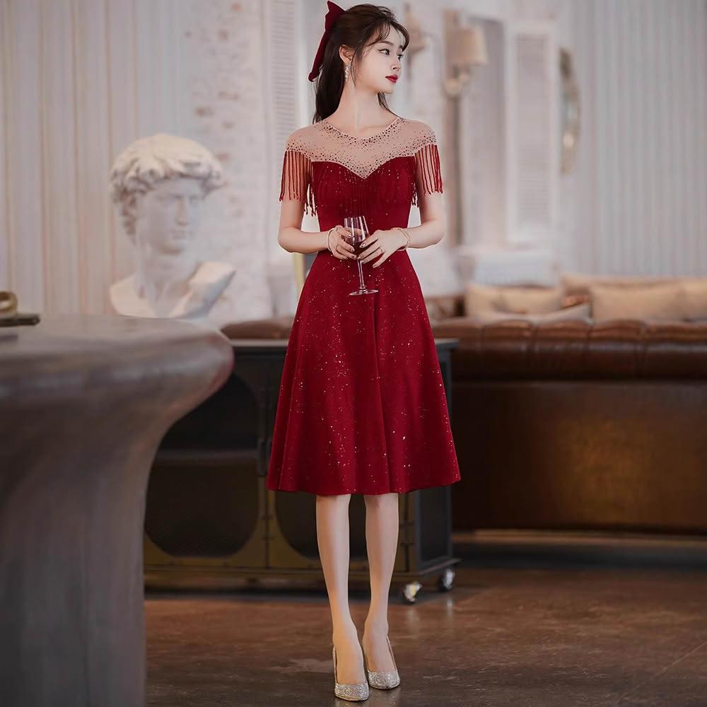 核桃小鋪 大碼新娘敬酒服夏季2025新款酒紅色一字肩小個子訂婚結婚回門禮服 3
