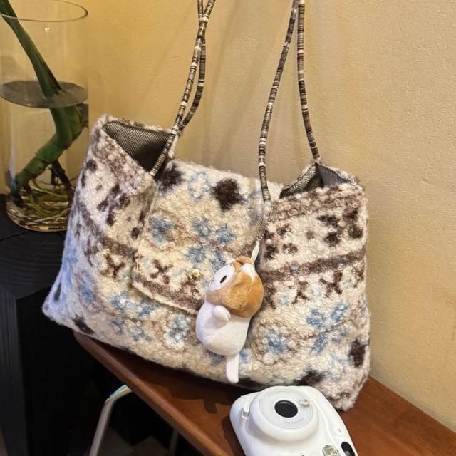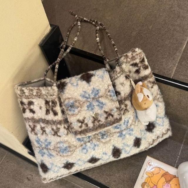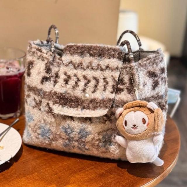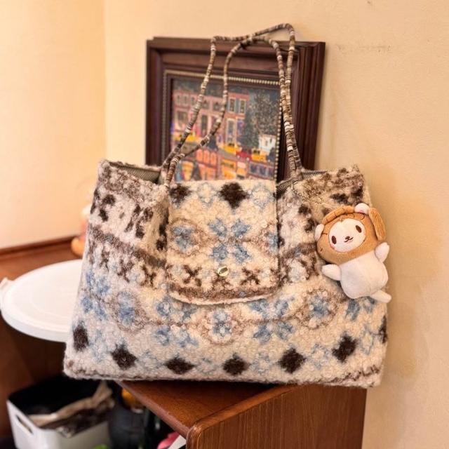 費爾島羊羔毛托特包包女2026新款秋冬毛絨大容量氛圍感手提單肩包