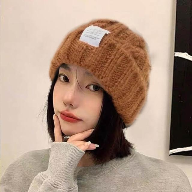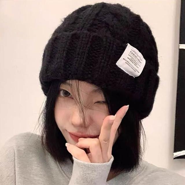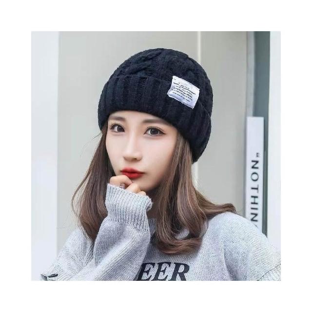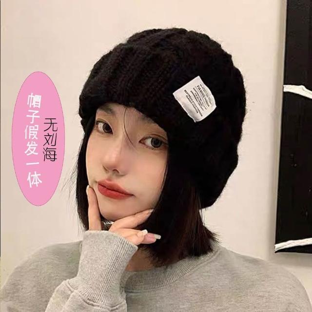 帽子假髮一體短直髮韓板粗針織貼布麻花毛線帽女冬季保暖帽護耳