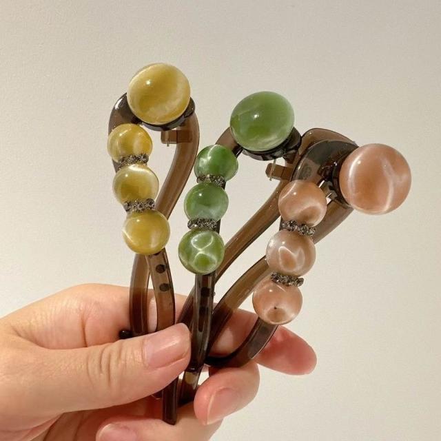 珠珠水鑽髮夾女簡約隨手盤發一字扭扭夾2025抓夾高級感夏天