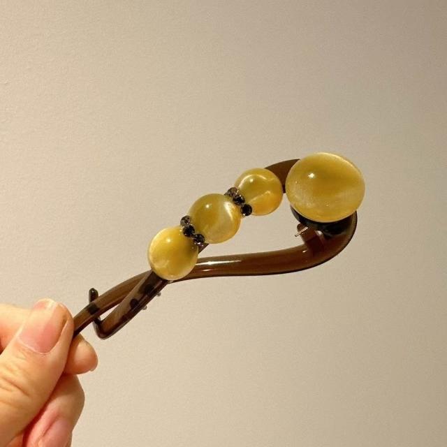 珠珠水鑽髮夾女簡約隨手盤發一字扭扭夾2025抓夾高級感夏天